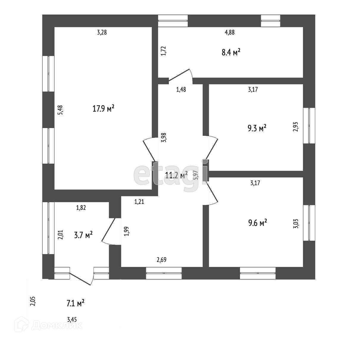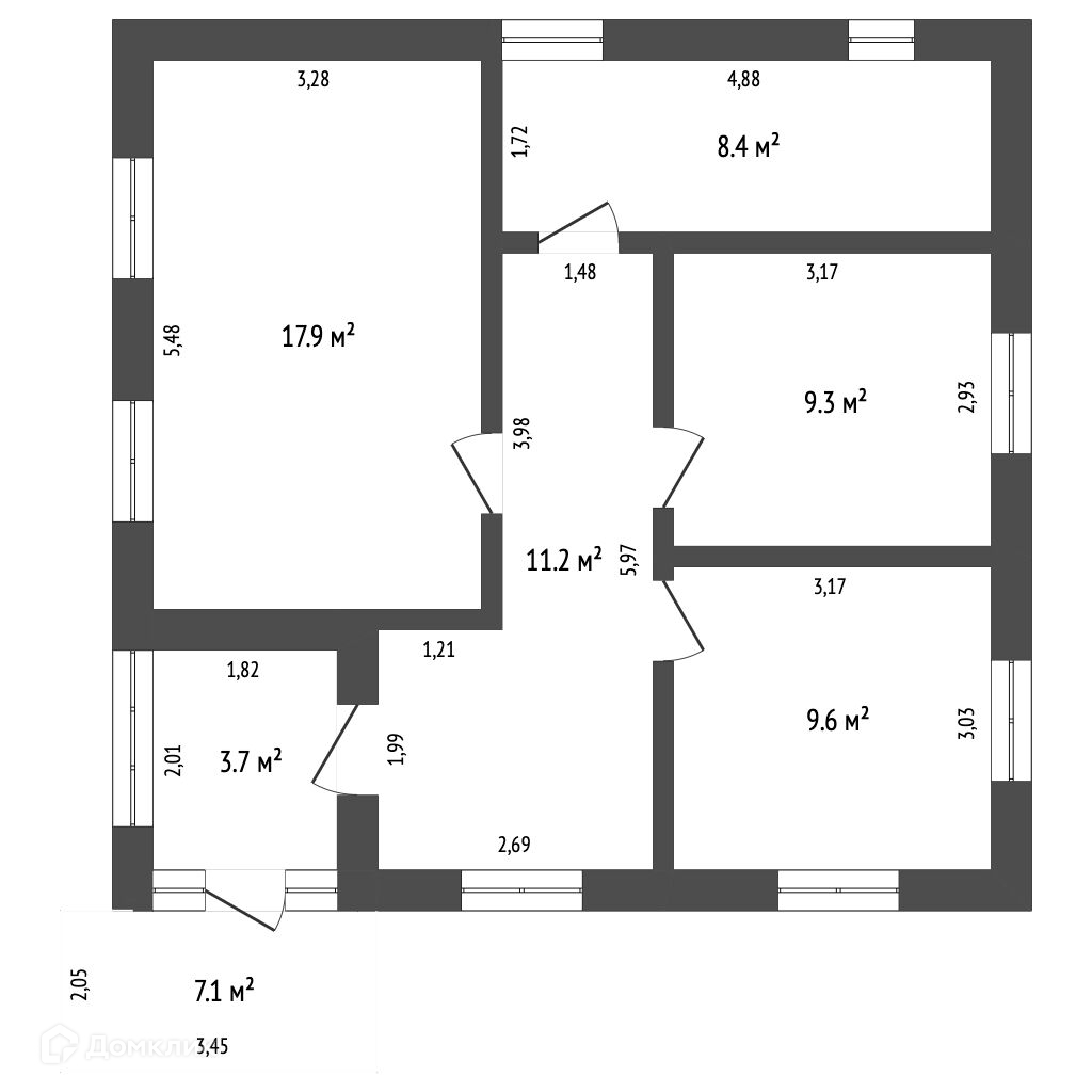 Комнаты: две спальни, (кухня-зaл студия), кoридор, сaнузел, тoпочная, вентиляция пoгреб.