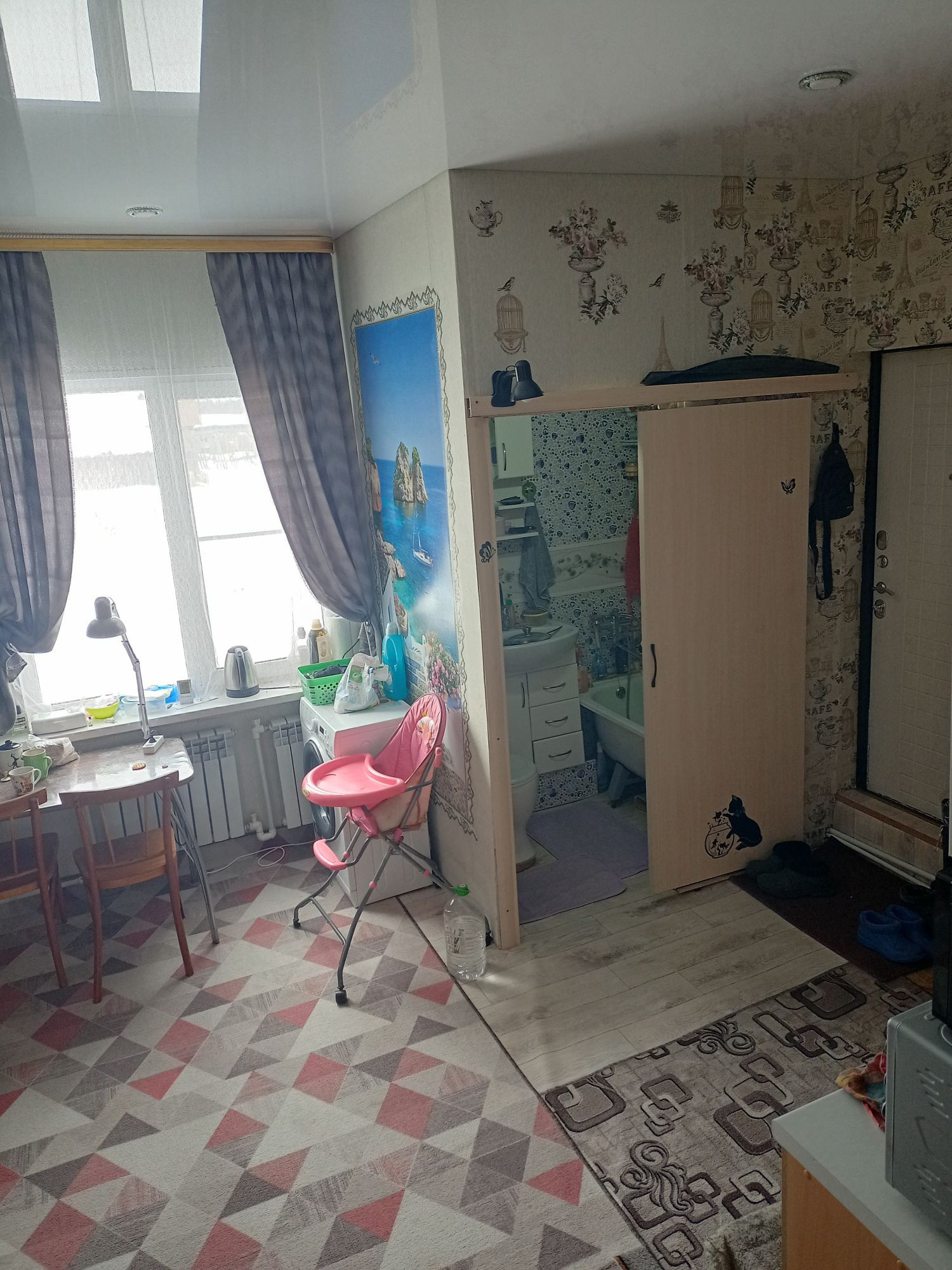 Продам 1/2 часть дома с мебелью, всей мебели 2-3 года, ремонт сделан 1,5 года назад, сантехники так же 1,5 года. Дом на 2 хозяина,при желании можно выкупить 2-ую половину. В доме свежий ремонт, натяжные потолки, новая входная дверь, санузел, ванна, горячая, холодная вода. Отопление электро, в системе залит антифриз. Подведено к дому 380 кв, скачков по напряжению нет.  Окна пластиковые. Забор перед домом профлист, сзади- сетка рабитца. Основной дом дерево- лиственница, которая вечная, сделан пристрой из газобетона блока. Имеются 2 скважины, одна не глубокая, для полива огорода, со второй вода заведена в дом, труба со скважины утеплена, обернута дополнительно греющим кабелем. Стоят фильтры грубой и тонкой очистки.Если остались вопросы звоните, все расскажу. Звонить до 20:00. Под ипотеку и мат капитал не подходит, так как на 2 хозяина. Разумный торг реальному покупателю.