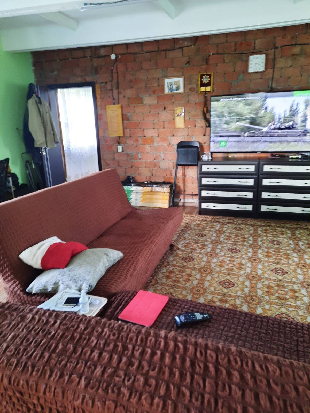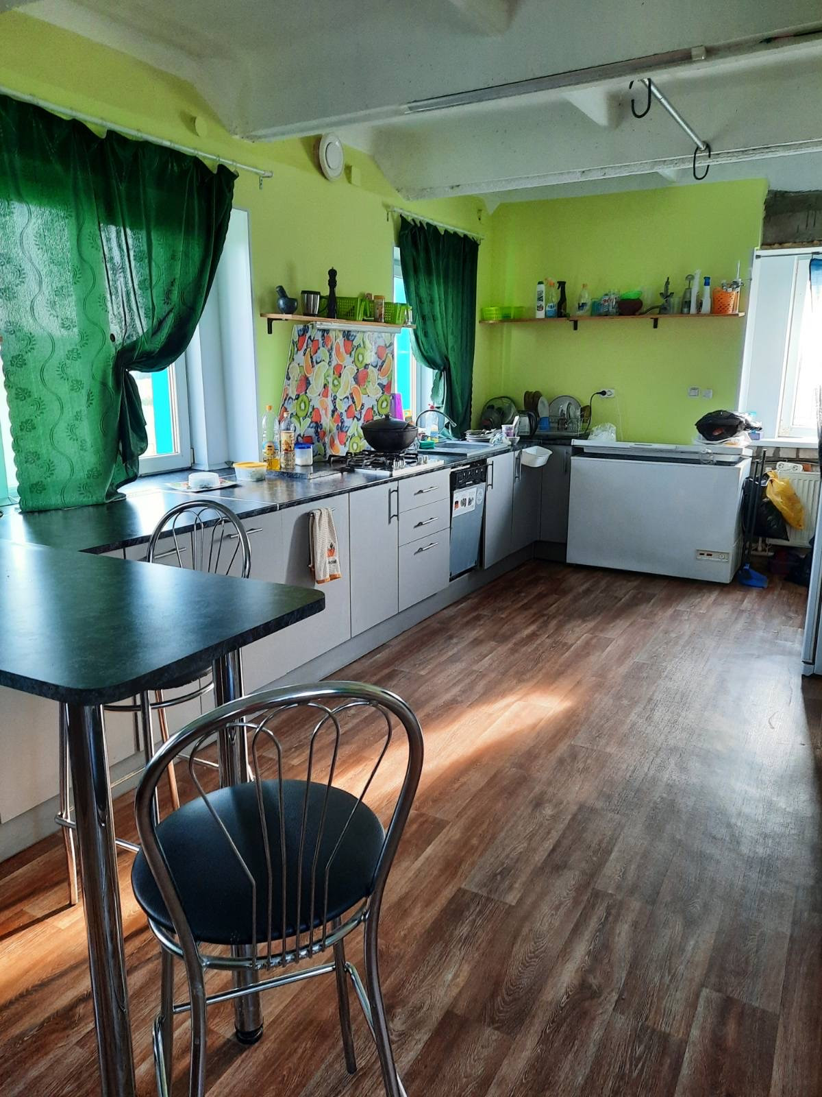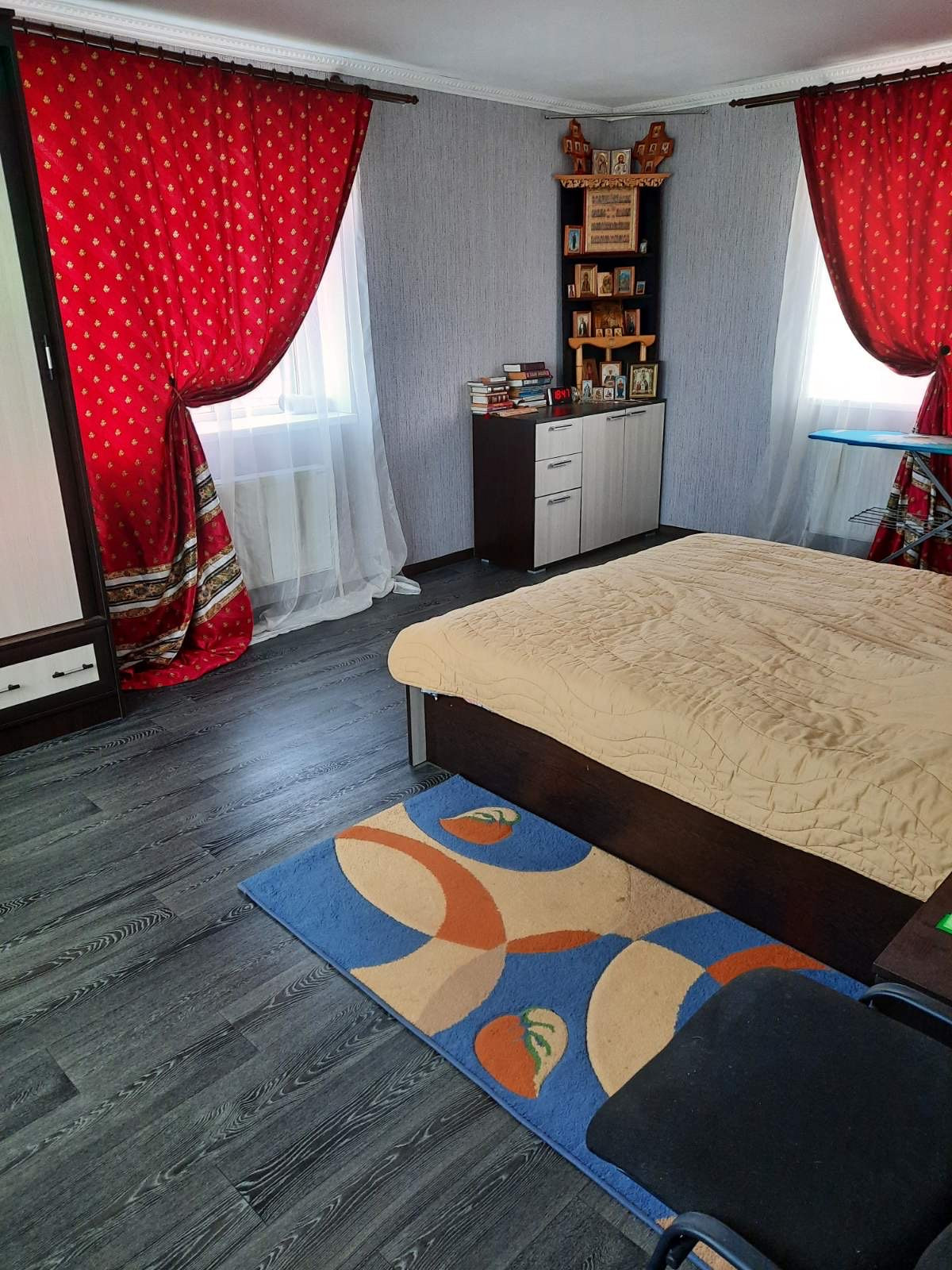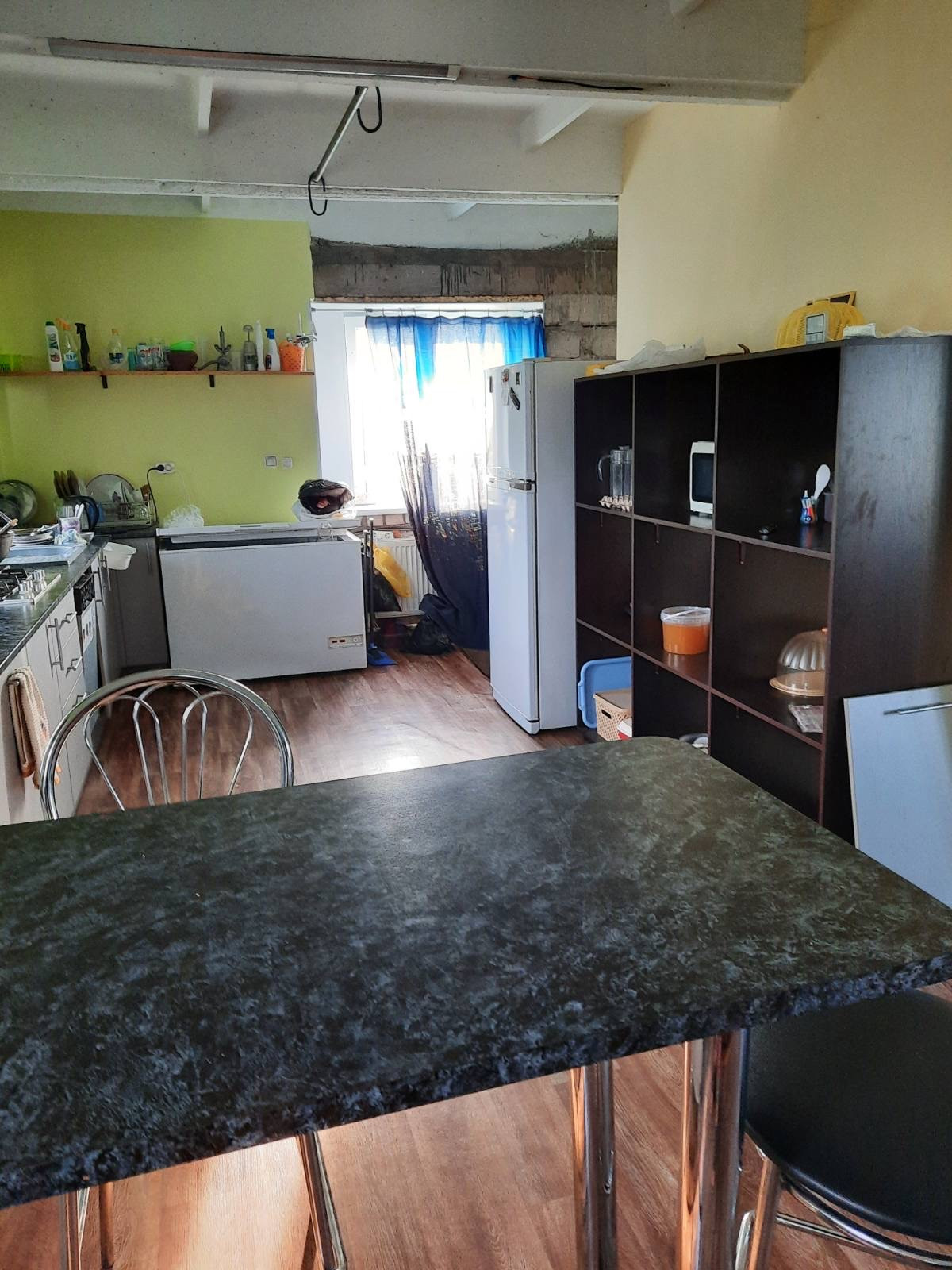 Продаётся двухэтажный дом со всеми удобствами и мебелью. Газовый котёл, установленный в котельной с отдельным входом, обеспечивает дом теплом и горячей водой. Наружные стены дома утеплены и покрыты металлическими панелями. Водоснабжение от скважины, расположенной во дворе. Водоотведение в септик за территорией. Второй этаж жилой с просторной спальной комнатой и большой гостиной, совмещенной с кухней. Спальный и кухонный гарнитуры, гостиная мебель и техника остаются и входят в стоимость дома.В ванной комнате умывальник, унитаз, стиральная машинка и угловая ванная. На первом этаже большая мастерская, санузел, душевая. Территория двора огорожена забором. Есть два въезда с широкими воротами и калитками.