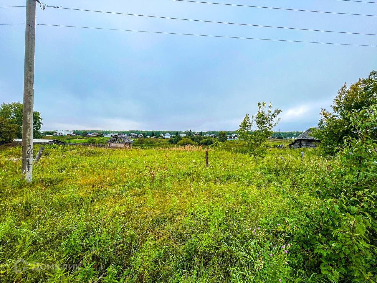 Участок правильной формы, 26 соток. Земля вспахана. Возле участка установлен электрический столб.