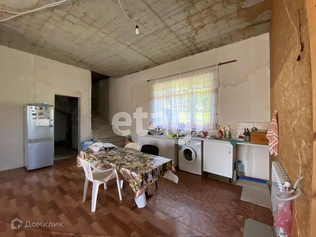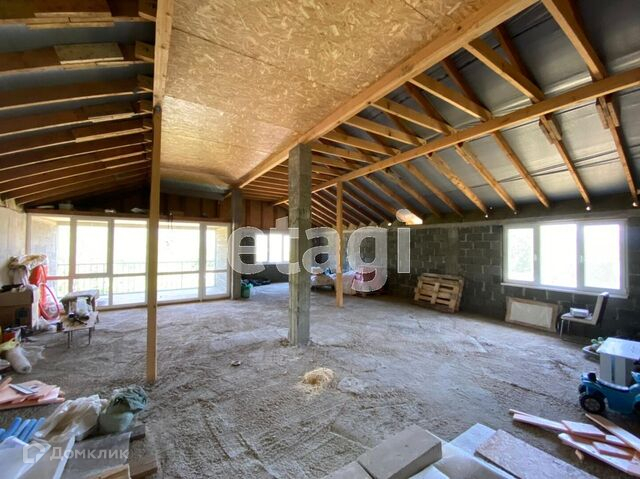 В коттедже - 1 этаж: прихожая, большая кухня-гостиная, спальня, санузел (не оборудован). Высота потоков – 3,2 м. 2 этаж: площадь не распланирована и совпадает по площади с 1-м этажом, 3 световые точки, большой балкон с панорамным видом на горы, высота потоков – 3,2 м. На 1 этаже выполнена предчистовая отделка, на 2-м этаже черновая отделка, везде установлены пластиковые окна.