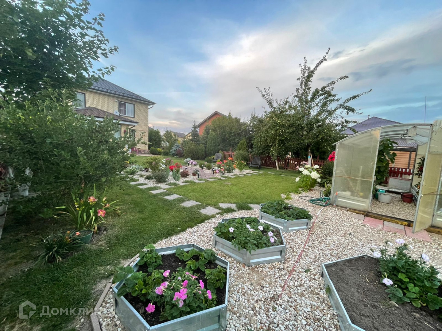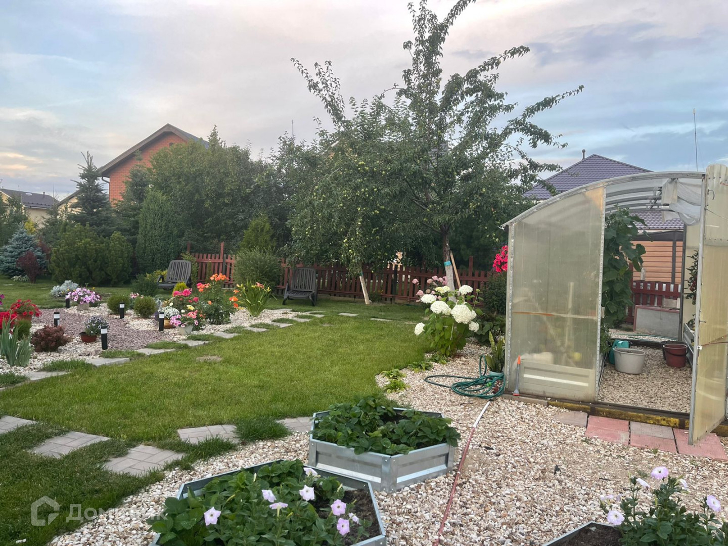 Участок ровный, высокий, сухой. За время эксплуатация завезено более 10 камазов плодородной почвы (чернозема), благодаря чему Вы можете собирать каждое лето и осень богатый урожай из собственных экологически чистых овощей, ягод и фруктов. На участке имеется теплица, клумбы, плодоносящие деревья и кустарники, а также ели, сосны и туи.