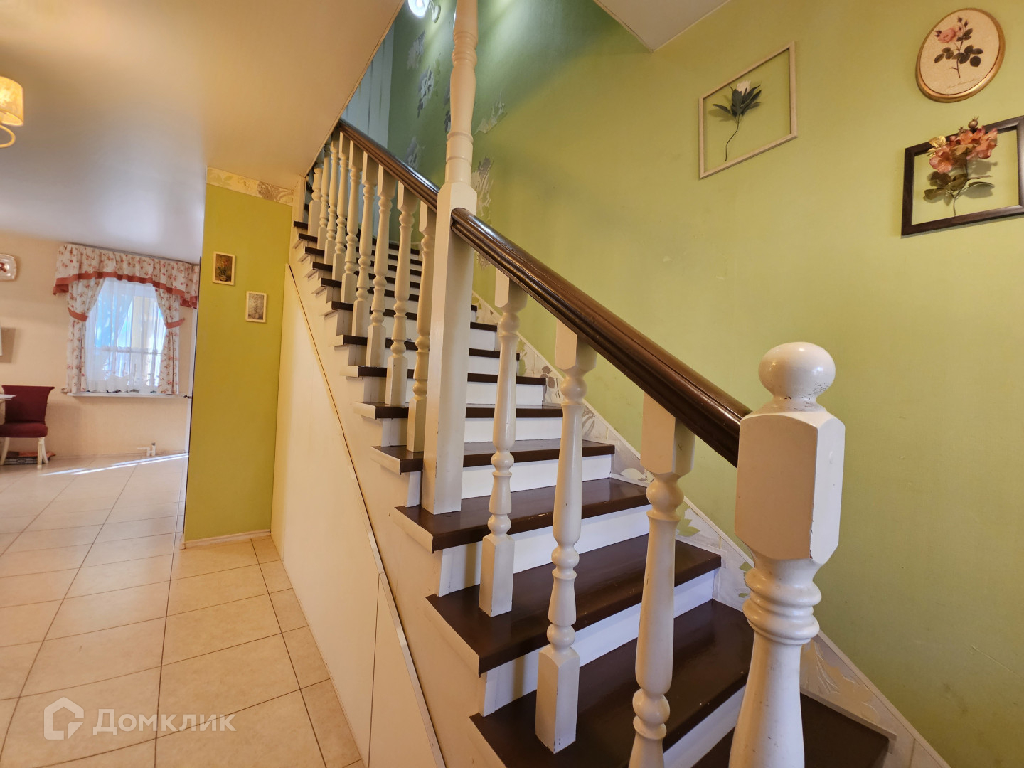 На полу плитка на 1-м этаже, на 2-м ламинат