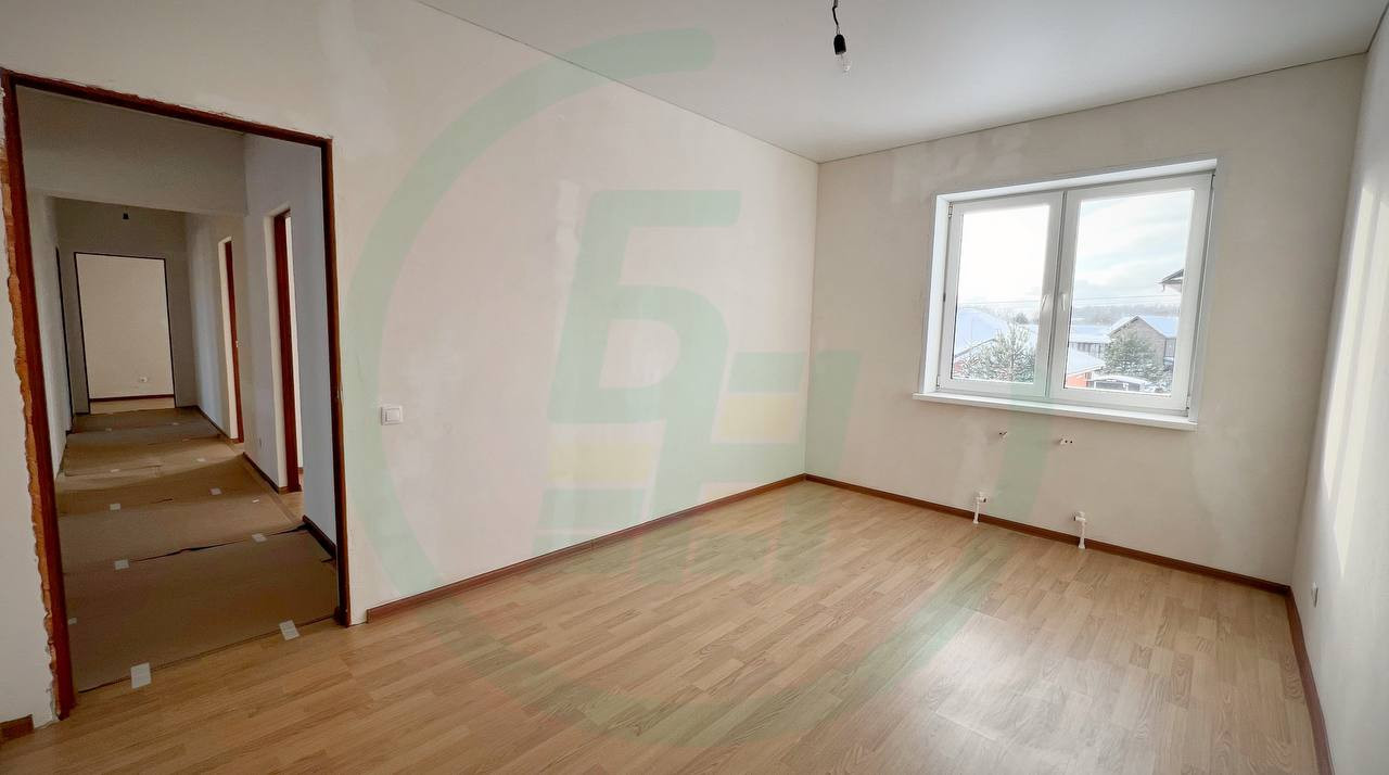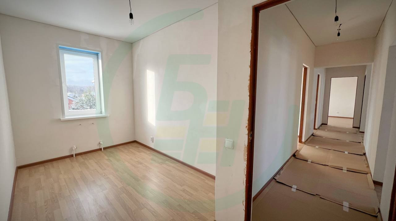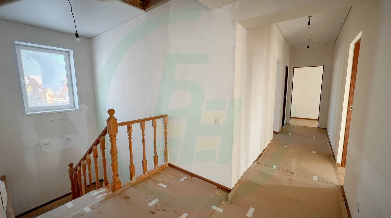 В доме из прихожей попадаете сразу же в просторную и светлую гостиную общей площадью более 50 кв.м.!!!, из гостиной можно попасть в комнату с лестницей на второй этаж, на кухню и санузел. Из кухни и комнаты с лестницей на второй этаж есть выходы на участок. На втором этаже расположены шесть жилых комнат и санузел. В доме никогда никто не жил, практически закончены все ремонтные работы, осталось поклеить обои на первом этаж и смонтировать напольное покрытие, второй этаж полностью готов.