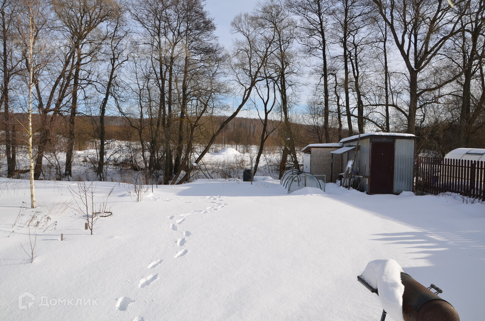 Участок крайний, расположен на берегу речки Крапивни. Из окон и с веранды открывается вид на поле и лес. На участке высажены молодые плодовые деревья, кустарники, виноград, есть небольшой огород и хозблок.