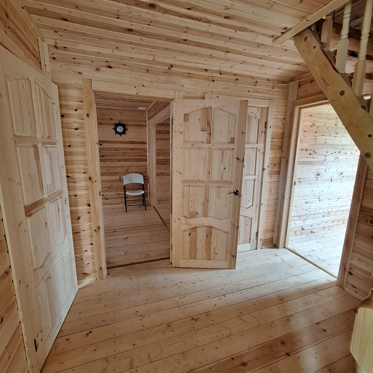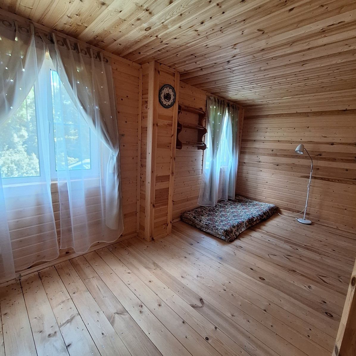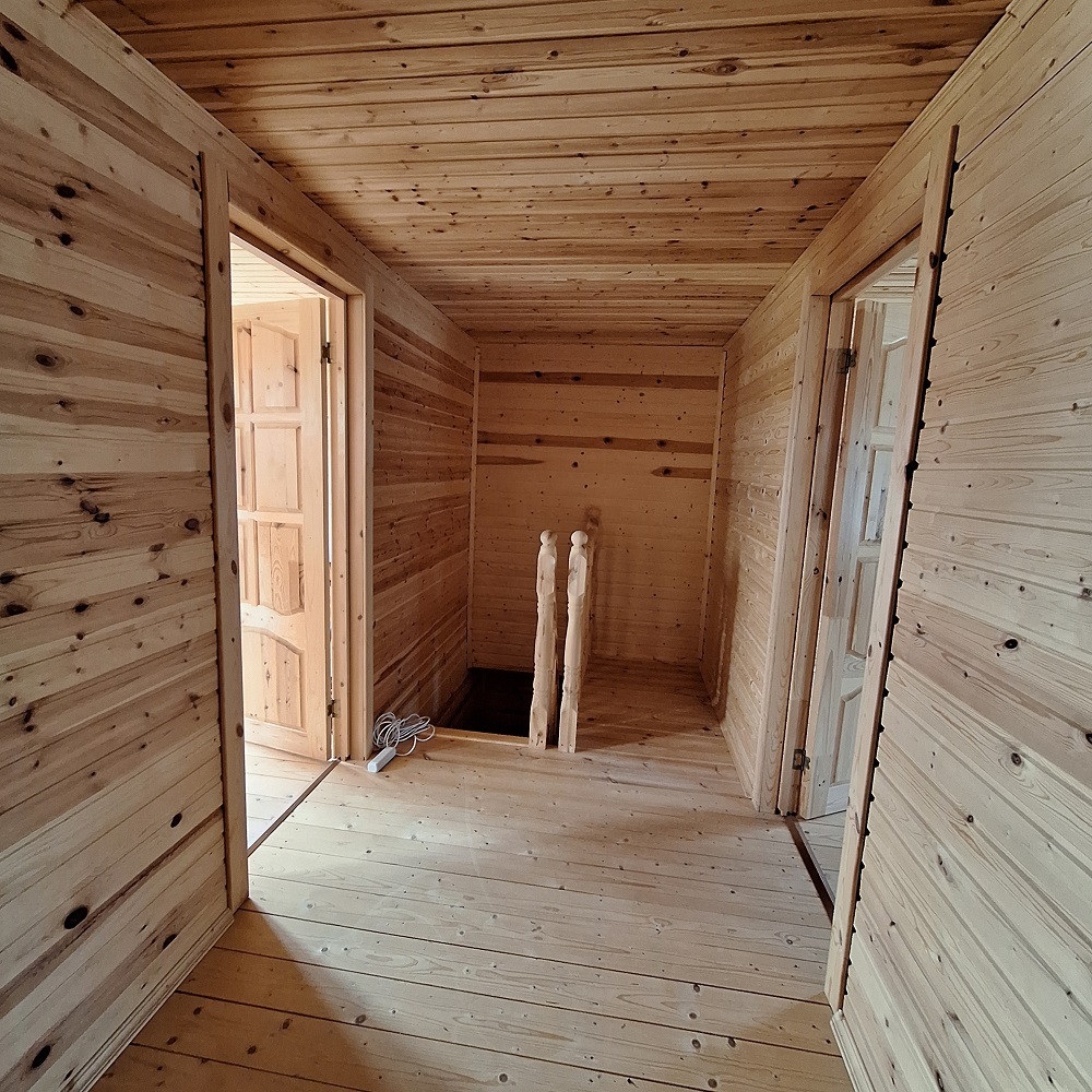 Дом построен по канадской технологии, два полноценных этажа, внешняя отделка сайдинг, крыша металлочерепица ондулин, окна двухкамерные стеклопакеты, входная металлическая дверь, внутренняя отделка - дерево, межкомнатные двери из массива сосны. Дом готов к использованию. После постройки в доме не жили. Дом прямо новенький, чистенький, с иголочки. На первом этаже прихожая, кухня-гостинная, комната, помещение для санузла, лестница. На втором этаже две спальни. В кухне -гостиной предусмотрена конструктивная возможность разделения ее на изолированные кухню и жилую комнату с отдельными входами. В доме ощущается приятный теплый запах дерева. Осталось сделать разводку отопления, воды и оборудовать санузел.