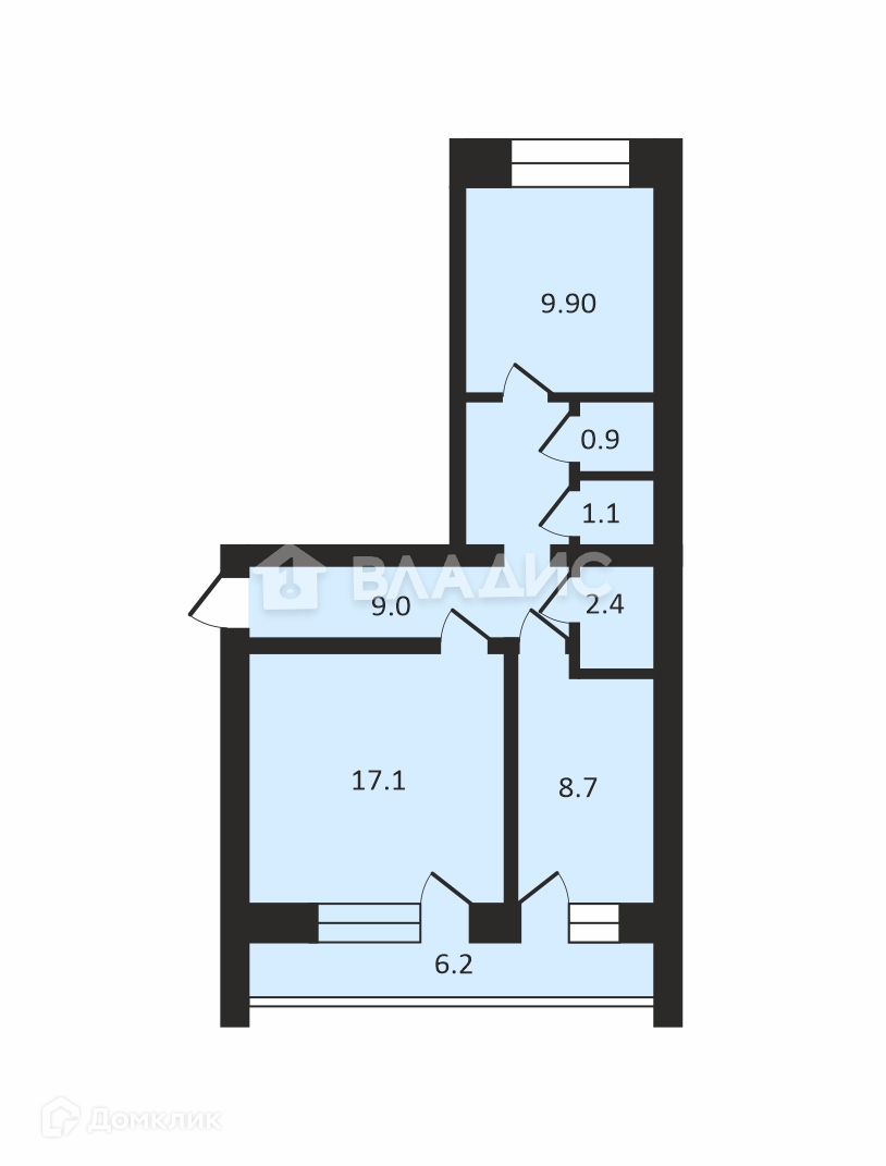 Общая площадь 49.1 м2