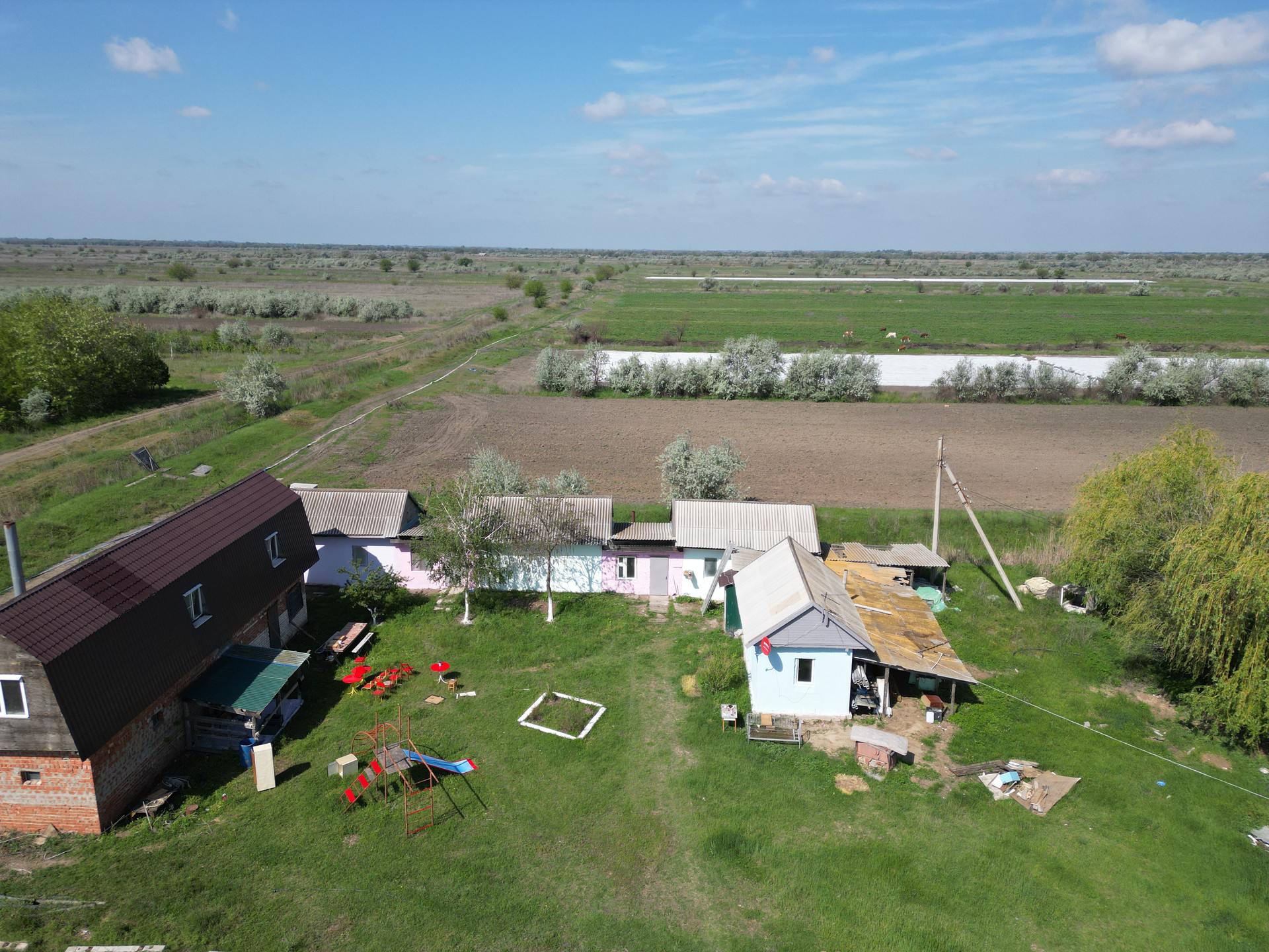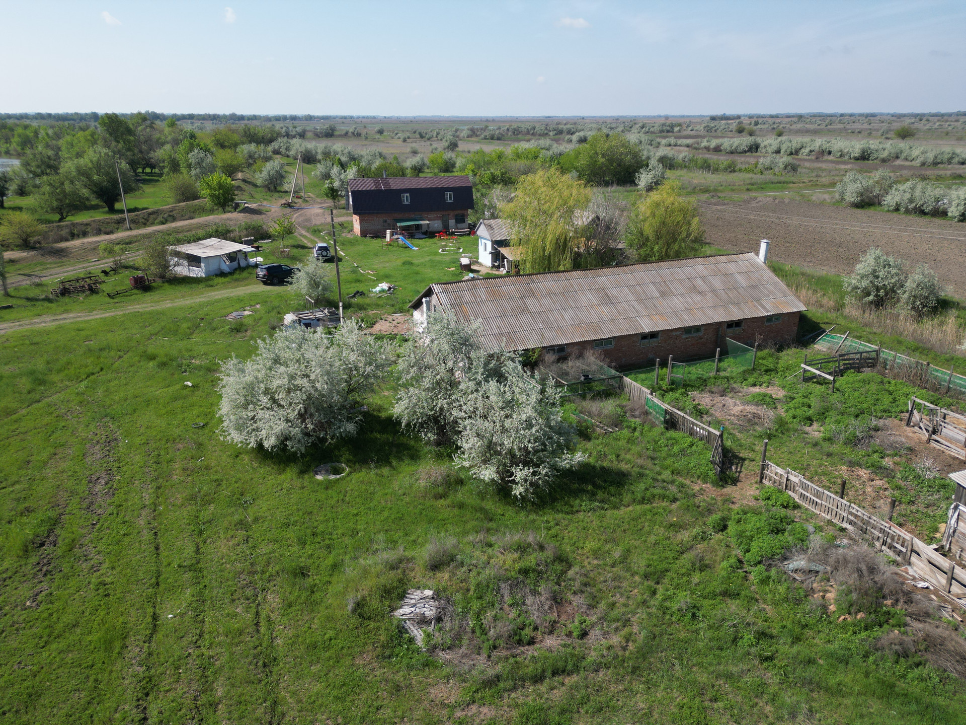 Кроме этого на участке один двухэтажный кирпичный дом размером 16.2х3.9 метра теплица размером 90х10 метров и помещение, выполненное из кирпича размером 26х11.5 метров, которое можно использовать под ангар, склад и другое назначение.