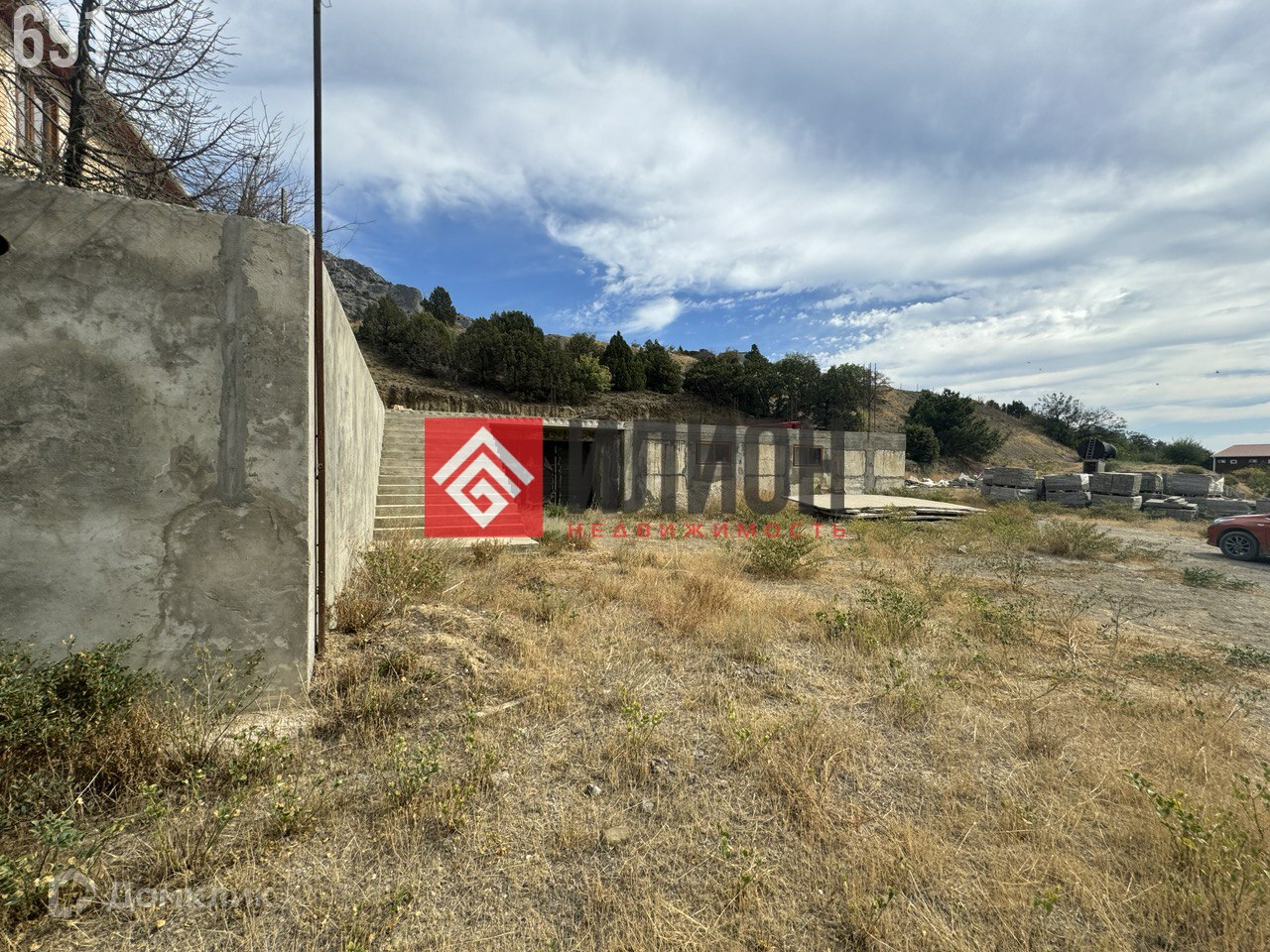 участка 20 сот, с прекрасным видом, возведен цокольный этаж,  идеально подходит для застройки гостиницы или дома.