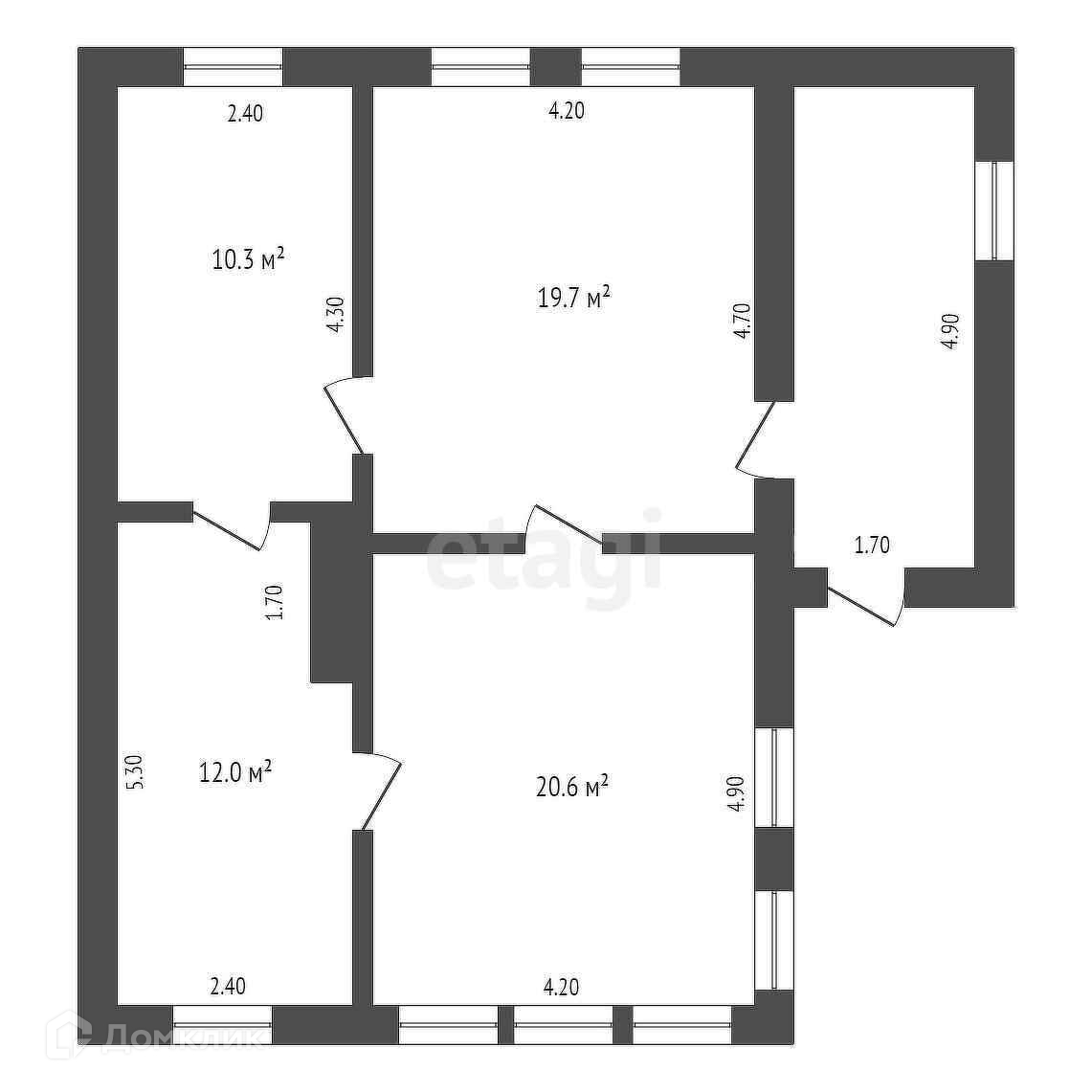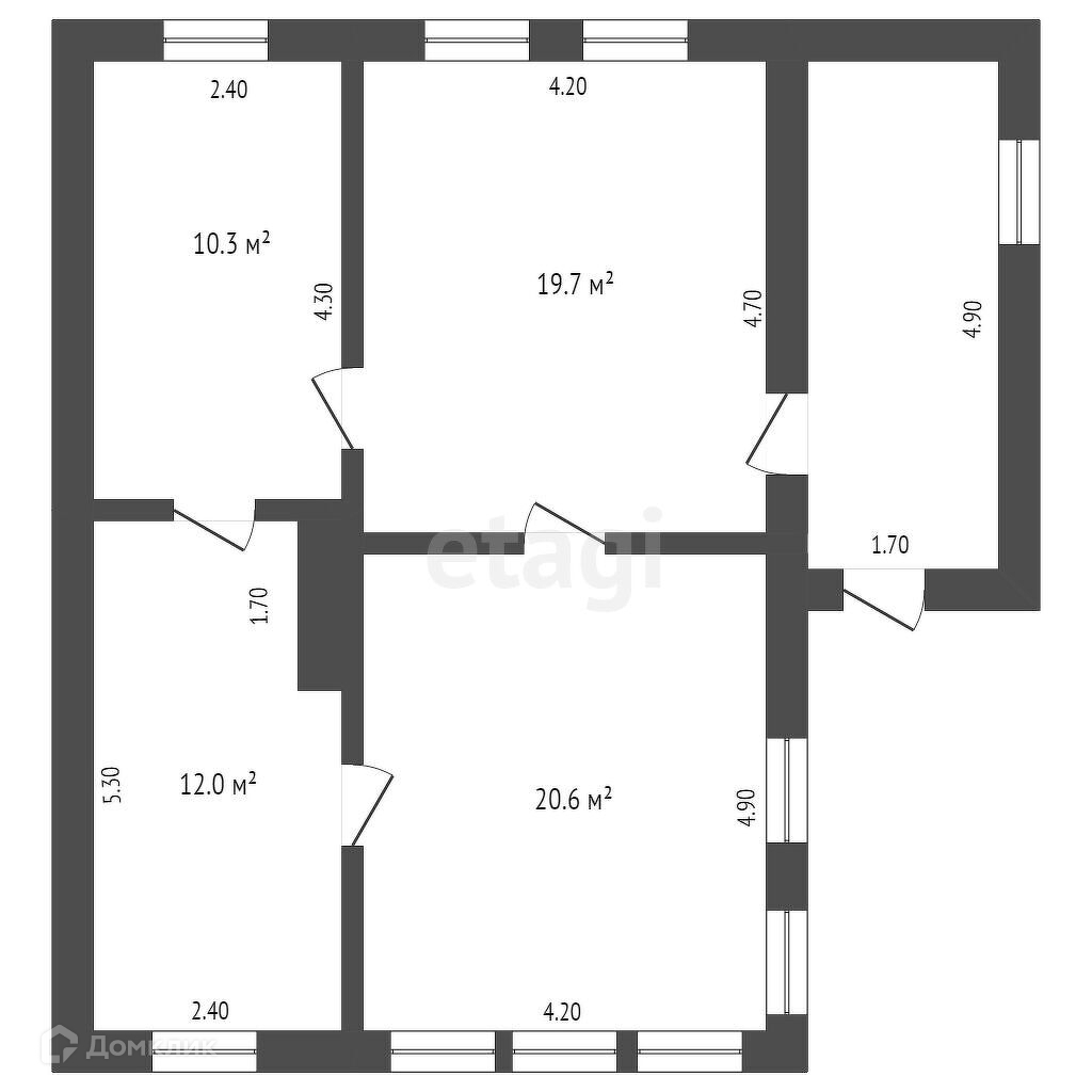 Общая площадь 62.3 м2