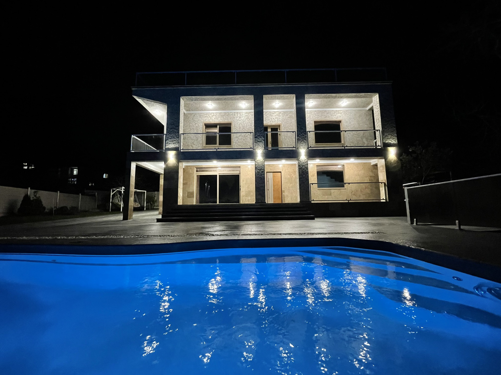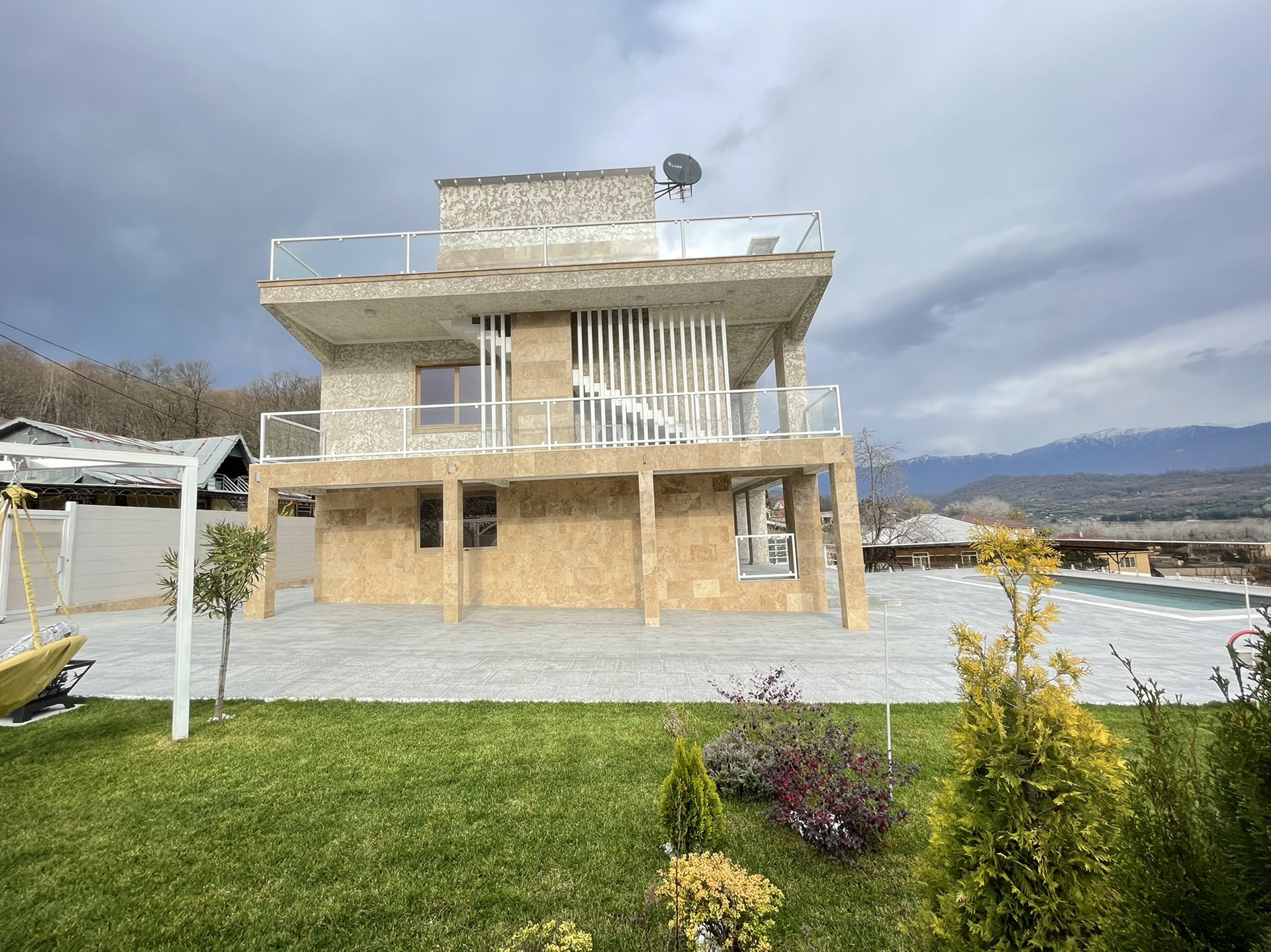 Дом площадью 280кв.м. + экс.кровля 140кв.м. с летней кухней, баром, обеденной и релакс зоной. Участок 9 соток ИЖС(разрешение на 1500 кв. м. и ведения личного подсобного хозяйства 516 кв.м.), коммуникации: свет две фазы(1 фаза - 15кв., 2 фаза - 5кв. при запросе докупается 10 киловатт и будет 30кв. на 2 фазы), вода поселковая централизованная скважина, газ в доме, канализация септик на 8ч.) Котельная отдельно от дома. Внутри дома предчистовая отделка(стяжка с тёплыми полами, электрика, сан.техника, штукатурка(дизайн проект в подарок, с возможностью реализации по отдельной договорённости), так же в доме мультизональная система кондиционирования с внутренними блоками, заложено управление светом, кондиционированием, видеонаблюдением, домофоном, системами автоматических ворот «Alutech»(2х), интернет и роутеры на три этажа. Отдельная от дома котельная. Алюминиевые оконные и дверные системы «Alutech». Фасад дома 50% натуральный камень травертин, 50% декоративный травертин(штукатурка). Во дворе дома крытый паркинг с автоматическими воротами на 2 авто, помимо этого отдельный въезд во двор(так же с автоматическими воротами) где свободно размешается до 4х авто, композитный бассейн 3,75х8,4 метра(подогрев, фильтрация, противоток, подсветка), двор вымощен гранитом, полное озеленение участка с автополивом, отдельная зона сада с плодовыми. Виды на горы Абхазии и море с бассейна. Адрес: г. ул. Ереванская д. 32А. ❗️❗️❗️СОБСТВЕННИК❗️❗️❗️