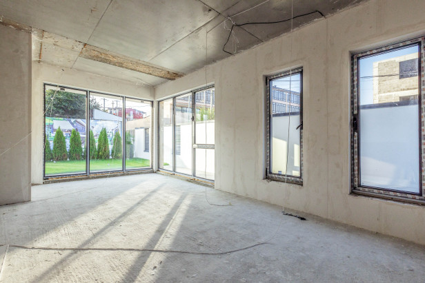 Строился по системе монолит-каркас, с использованием качественных материалов: фасад — керамогранит, панорамное остекление, алюминиевый профиль, контурная автоматическая подсветка. Внутри дома — предчистовая отделка.