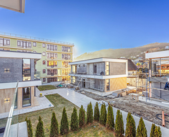 Строился по системе монолит-каркас, с использованием качественных материалов: фасад — керамогранит, панорамное остекление, алюминиевый профиль, контурная автоматическая подсветка. Внутри домов — предчистовая отделка.