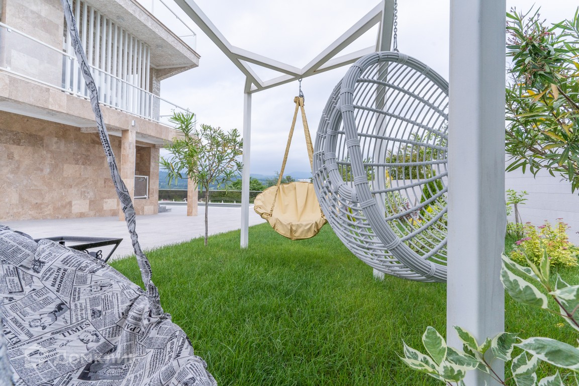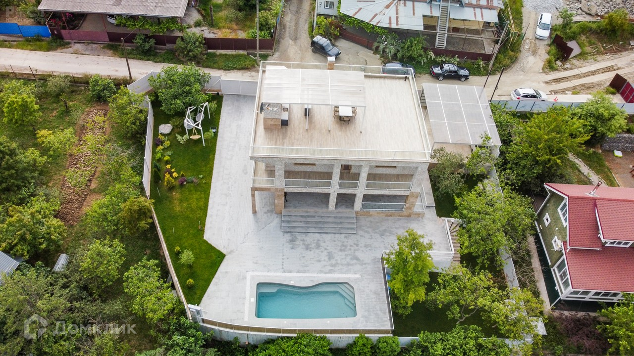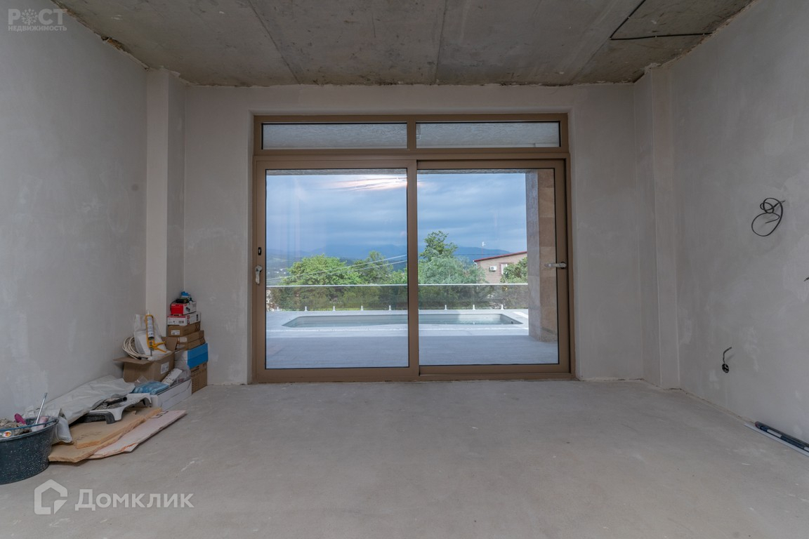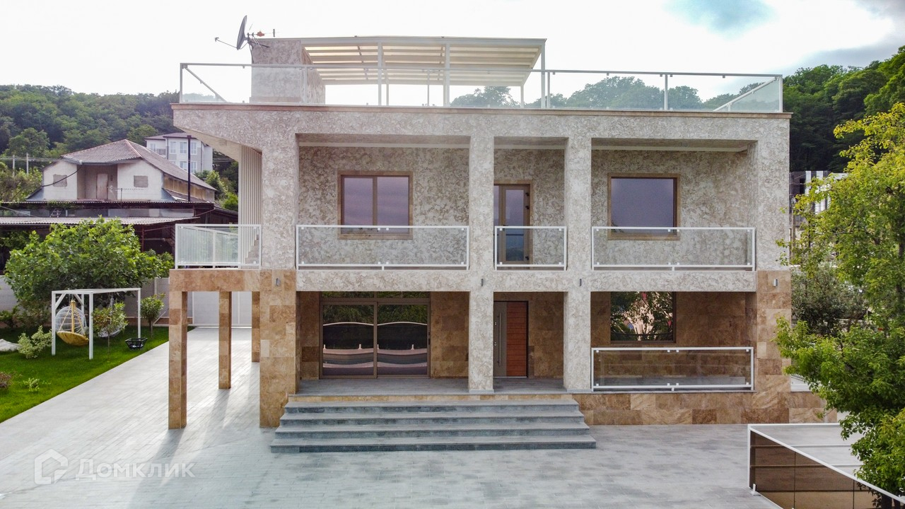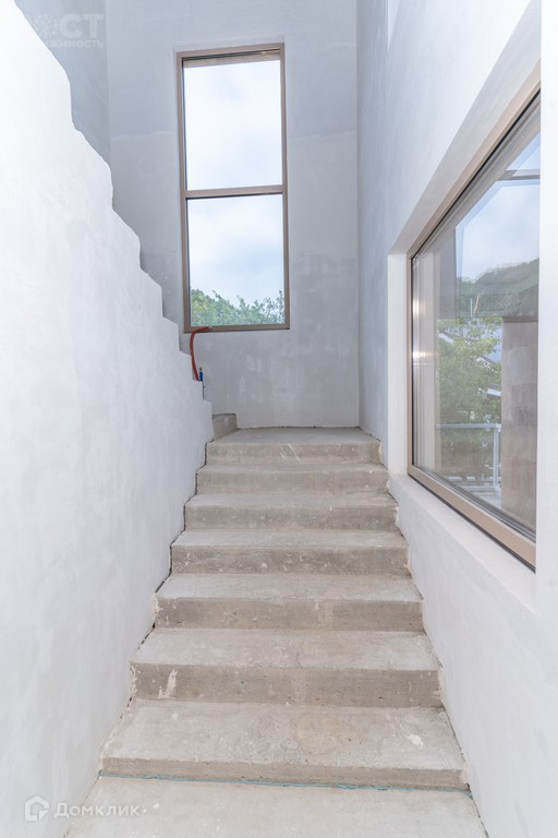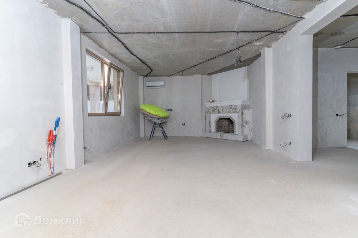 Дом шлакоблочный, с предчистовой отделкой, выполнена стяжка с тёплыми полом, разведена электрика и сантехника, стены отштукатурены (в подарок готовый дизайн проект, с возможностью реализации по отдельной договорённости), также в доме распланирована и заложена система кондиционирования с внутренними блоками, заложено управление светом, кондиционированием, видеонаблюдением, домофоном, системами автоматических ворот «Alutech», интернет и роутеры на три этажа, все для подключения системы "Умный дом". Алюминиевые оконные рамы и дверные блоки системы «Alutech». Фасад дома состоит из 50% натурального камня травертин, 50% из декоративного травертина.