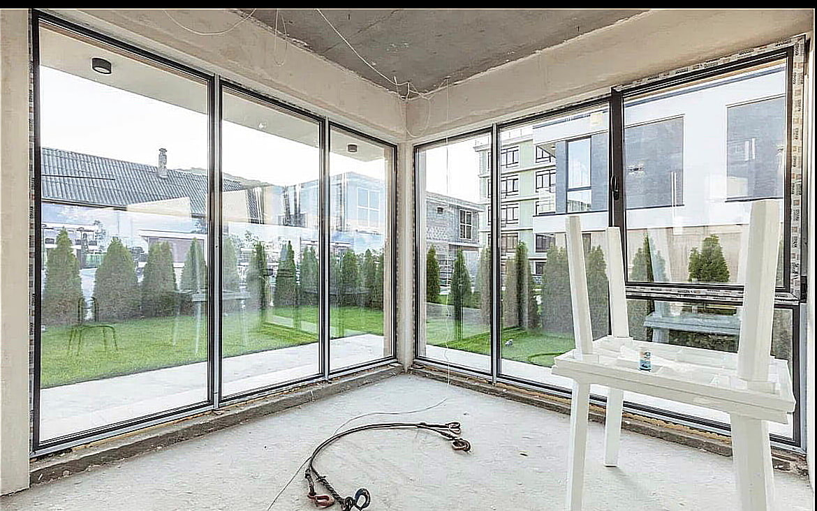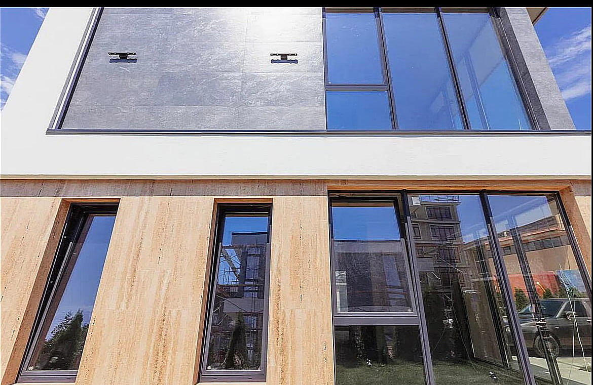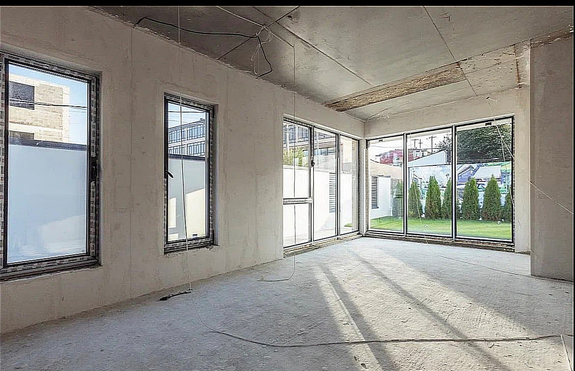 Строился по системе монолит-каркас, с использованием качественных материалов: фасад — керамогранит, панорамное остекление, алюминиевый профиль, контурная автоматическая подсветка. Внутри домов — предчистовая отделка.