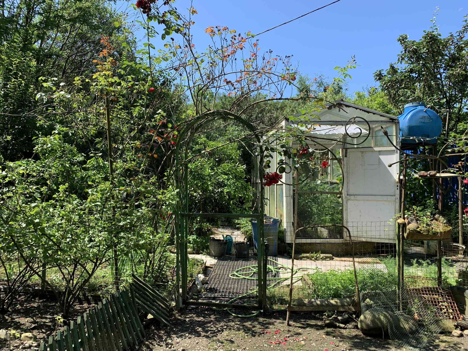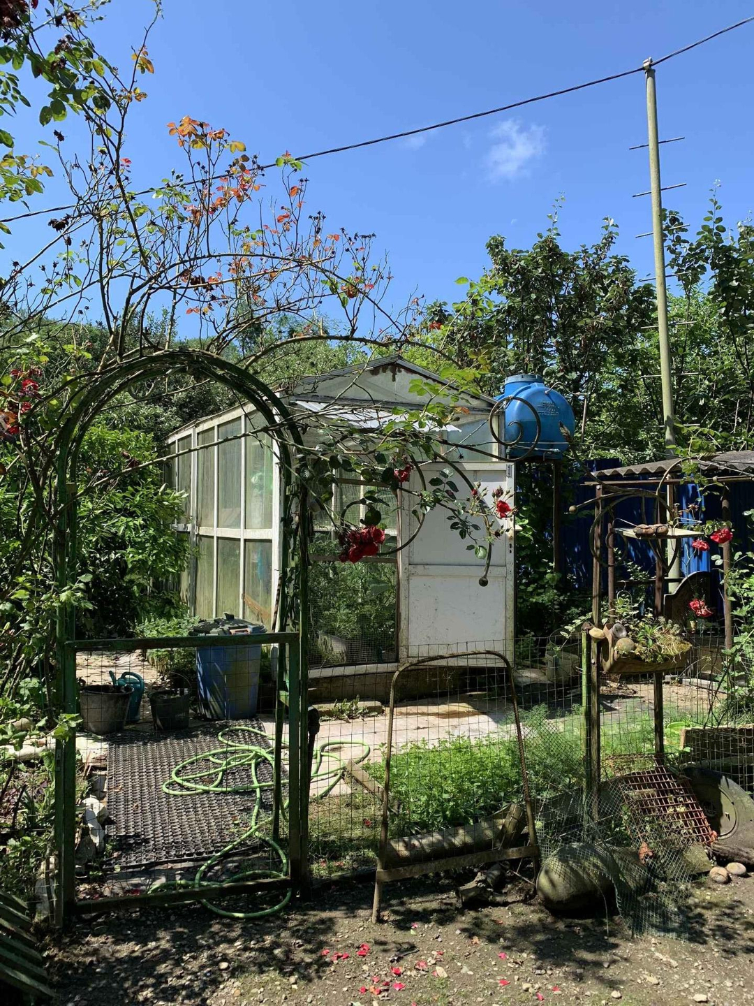 Территория участка хорошо озеленена. Есть замечательный сад с теплицей (стеклопакет). Высокие грядки, привозная земля чернозем. Капельный автополив.
