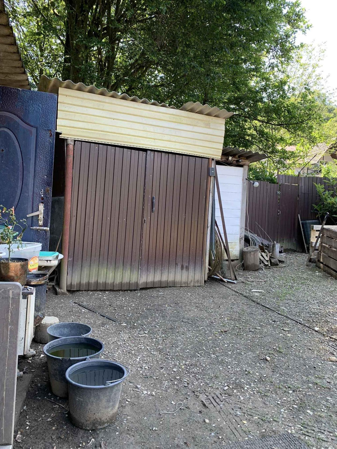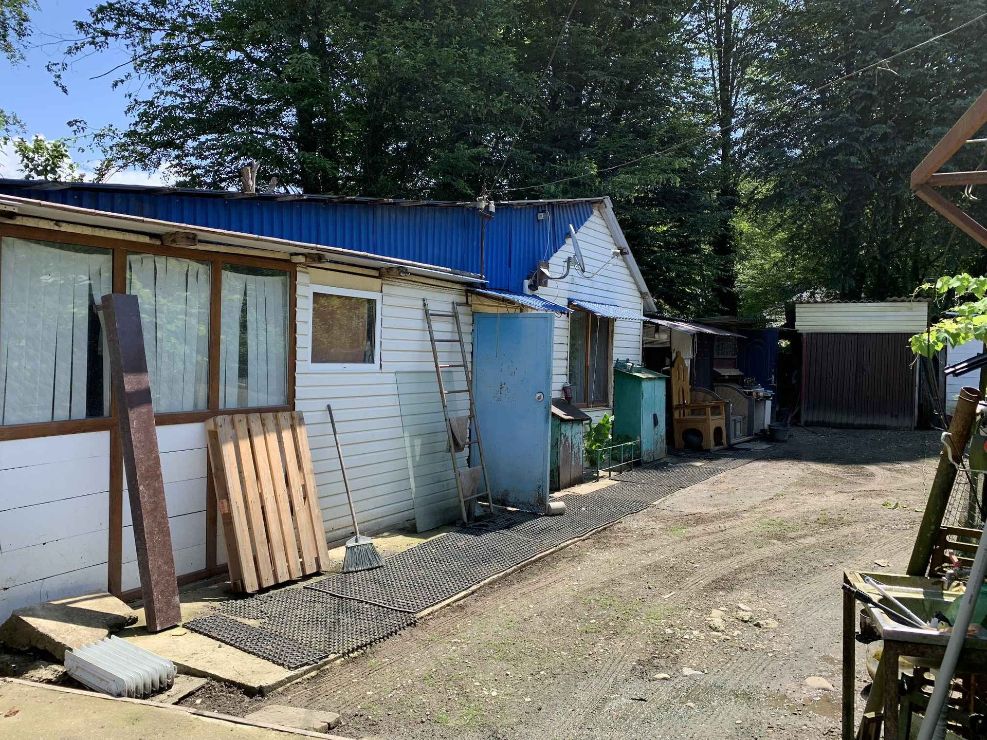 Домик оборудован туалетом, душем, кухней, спальней. Также имеется небольшой гараж. Хороший забетонированный въезд во двор. Есть парковочное место.