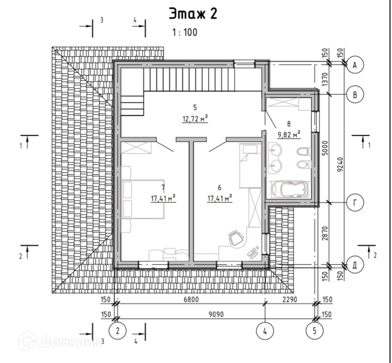 Поднимаясь на второй этаж, мы попадаем в холл, площадью 14 кв. м., через который можно попасть в две спальных комнаты и просторный санузел. Спальные комнаты абсолютно одинаковы по площади и размеру, каждая из которых 18 кв. м.