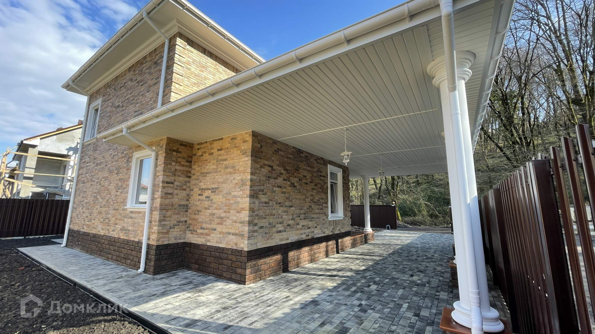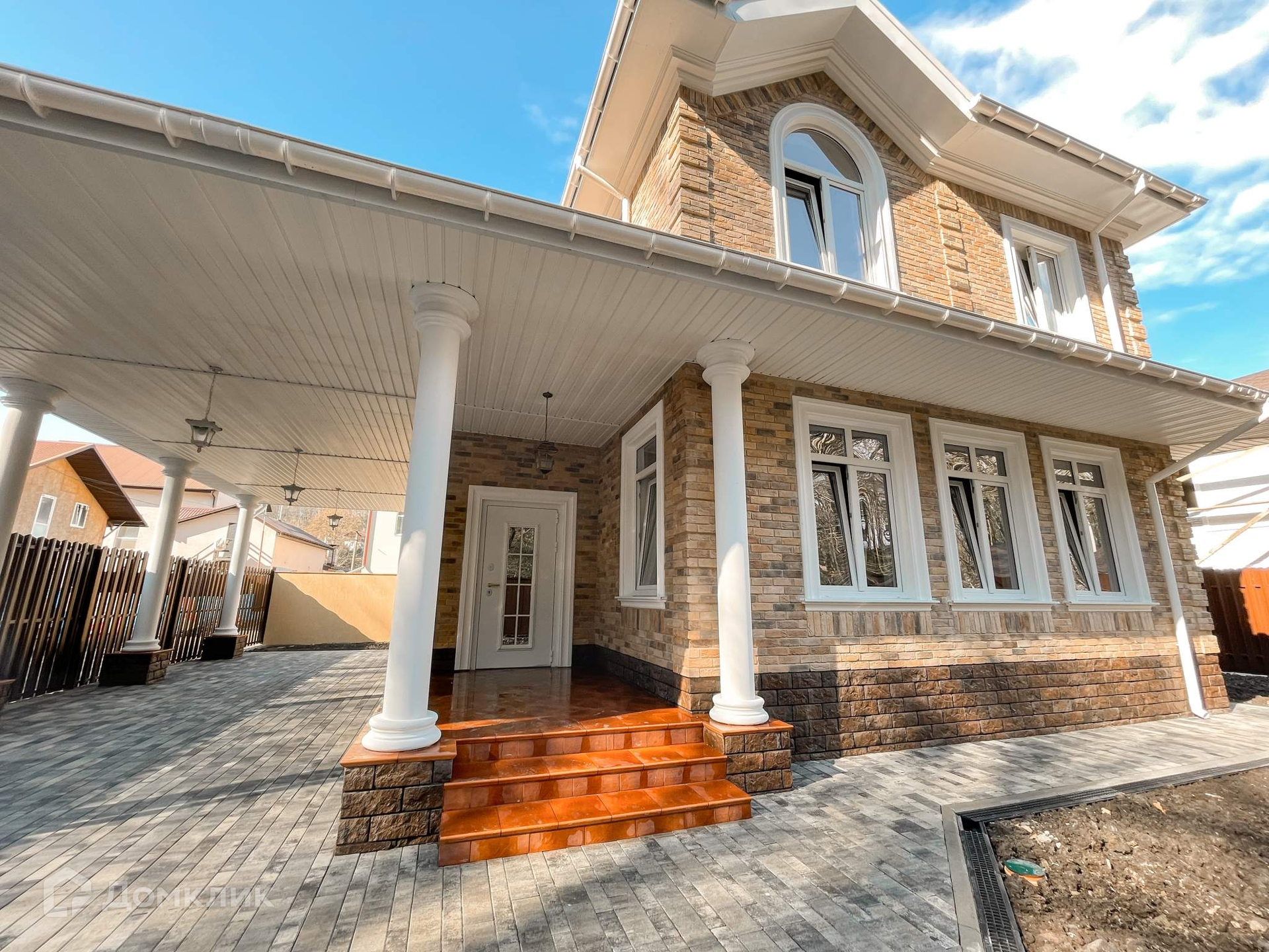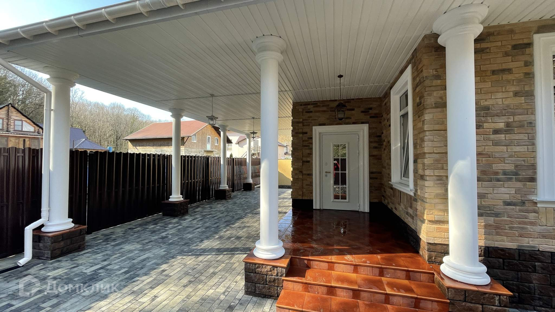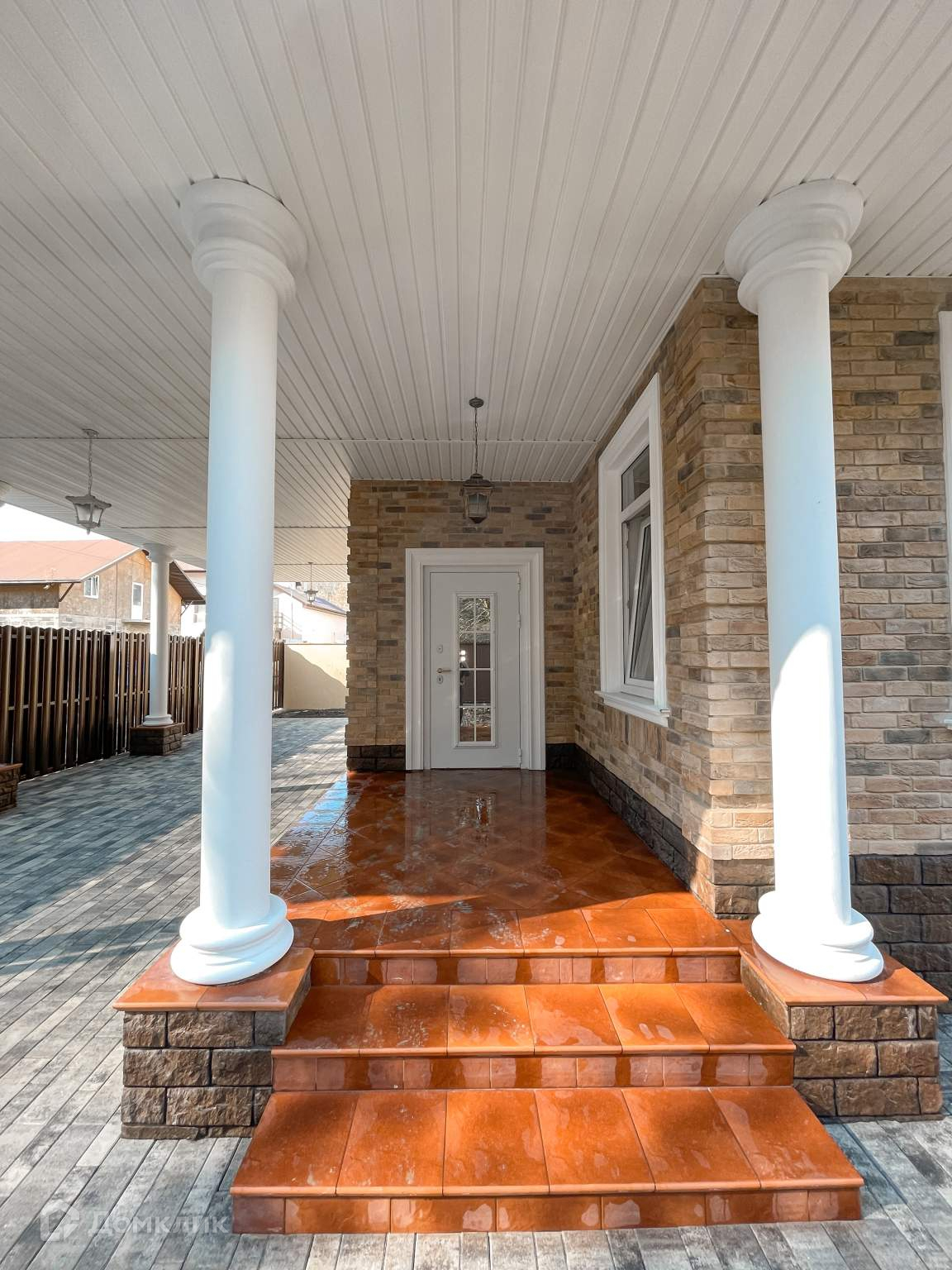Входная группа (крыльцо) выполнена из красивой клинкерной плитки.