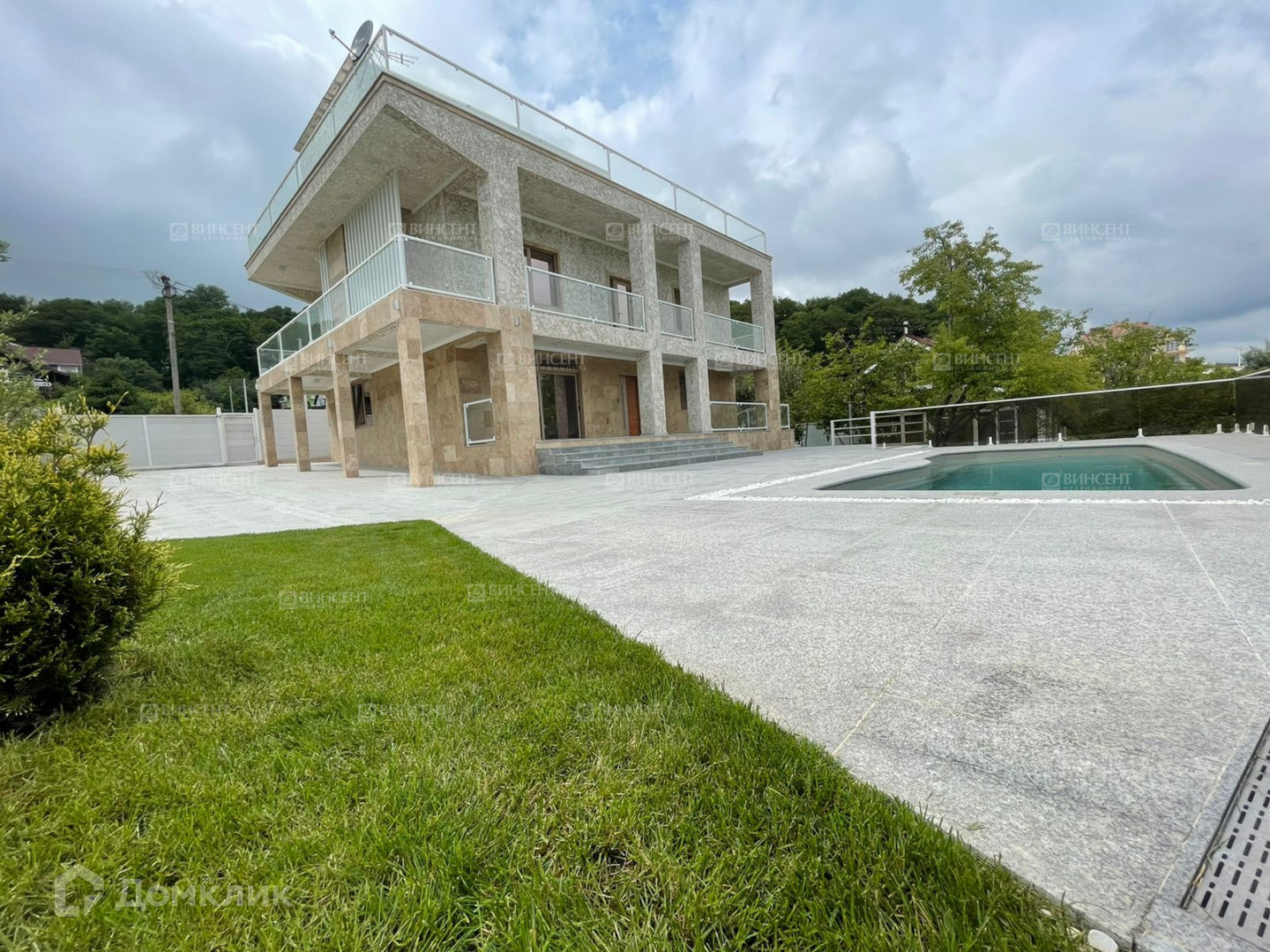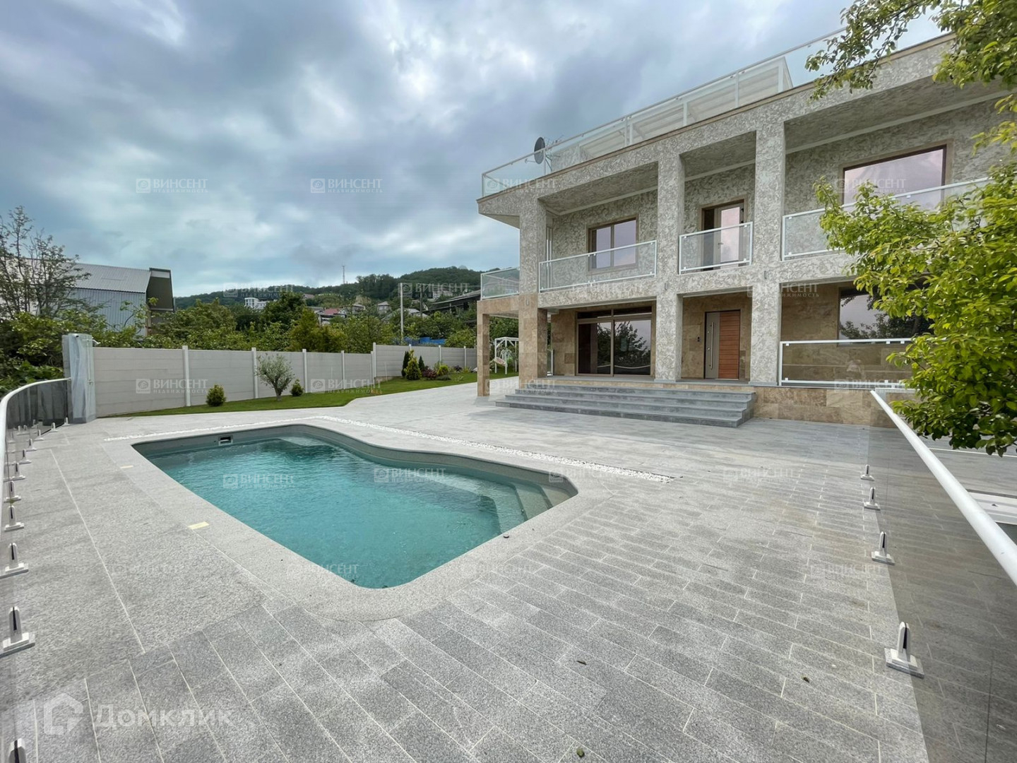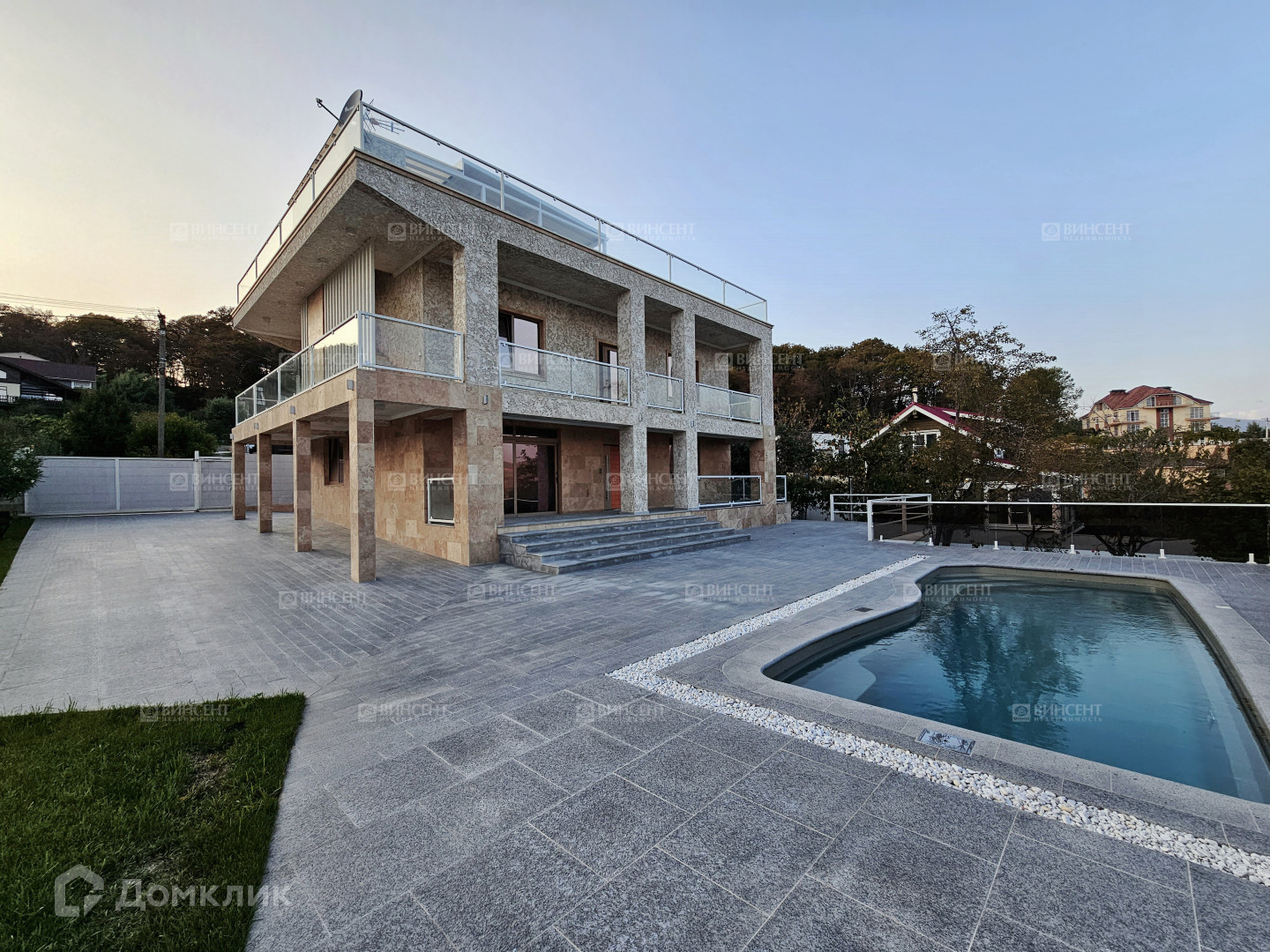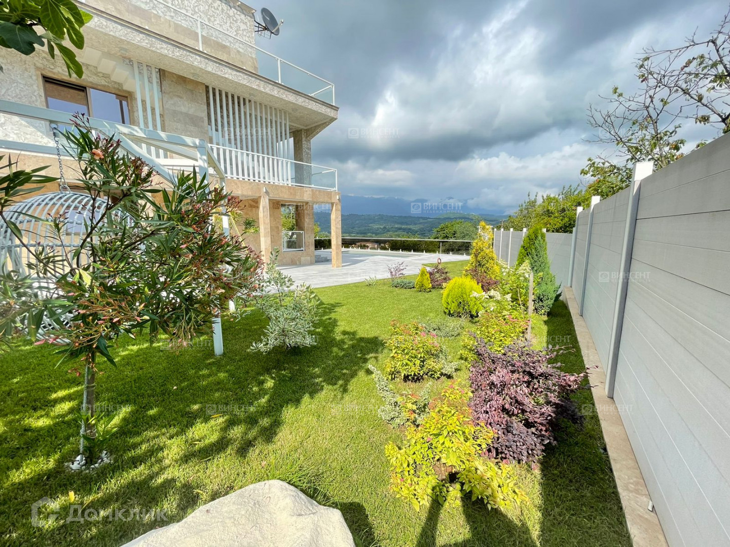 Во дворе дома крытый паркинг с автоматическими воротами на 2 авто, помимо этого отдельный въезд во двор(так же с автоматическими воротами) где свободно размешается до 4х авто, композитный бассейн 3,75х8,4 метра(подогрев, фильтрация, противоток, подсветка), двор вымощен гранитом, полное озеленение участка с автополивом, отдельная зона сада с плодовыми. Виды на горы Абхазии и море с бассейна.