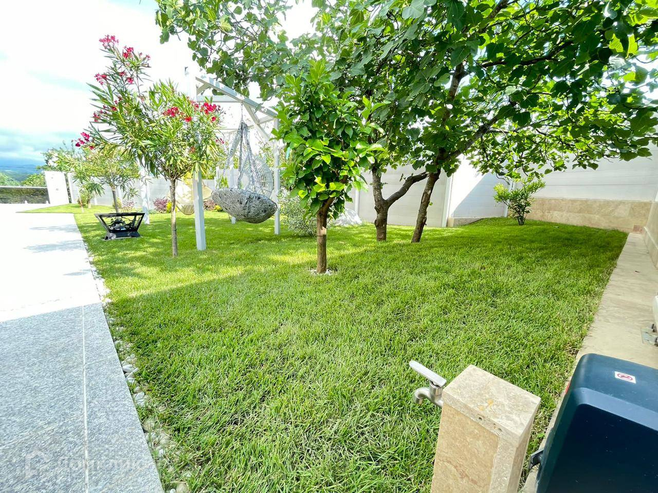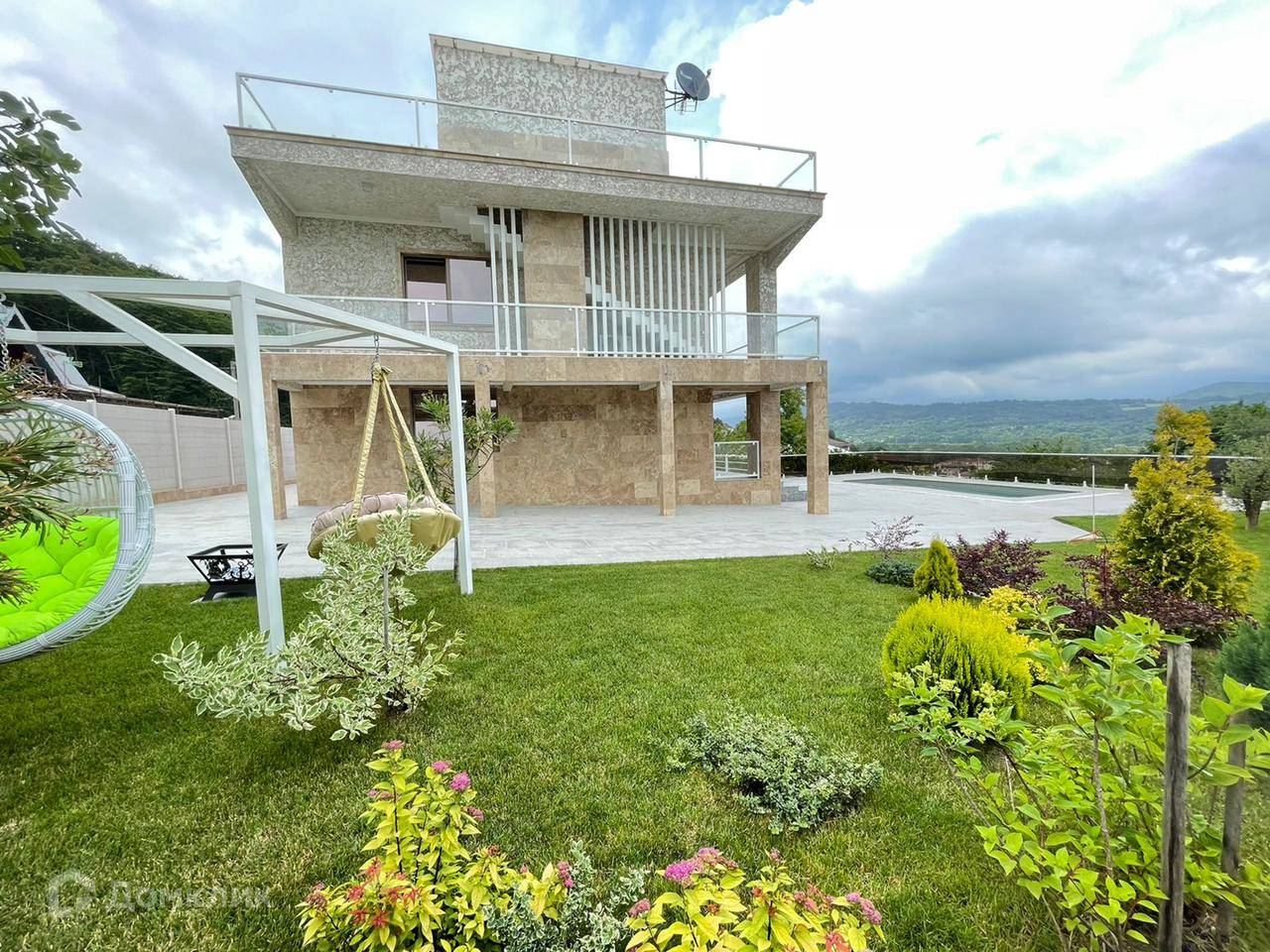 Алюминиевые оконные и дверные системы «Alutech». Фасад дома 50% натуральный камень травертин, 50% декоративный травертин(штукатурка). Во дворе дома крытый паркинг с автоматическими воротами на 2-4 авто, помимо этого отдельный въезд во двор(так же с автоматическими воротами) где свободно размешается до 5 авто, композитный бассейн 3,75х8,4 метра(подогрев, фильтрация, противоток, подсветка), подготовлено место под баню, куда выведены все коммуникации, двор вымощен натуральным толстым гранитом, можно загонять любую технику, полное дизайнерское озеленение участка с автополивом, отдельная зона сада с плодовыми(фейхоа, инжир, хурма, лимон, мандарин, гранат, груша, олива, виноград).