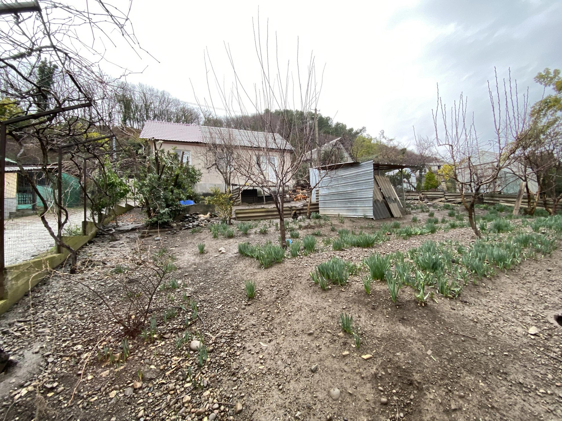 На участке имеется парковочное место, вольер для собаки. Большую часть территории занимает сад.