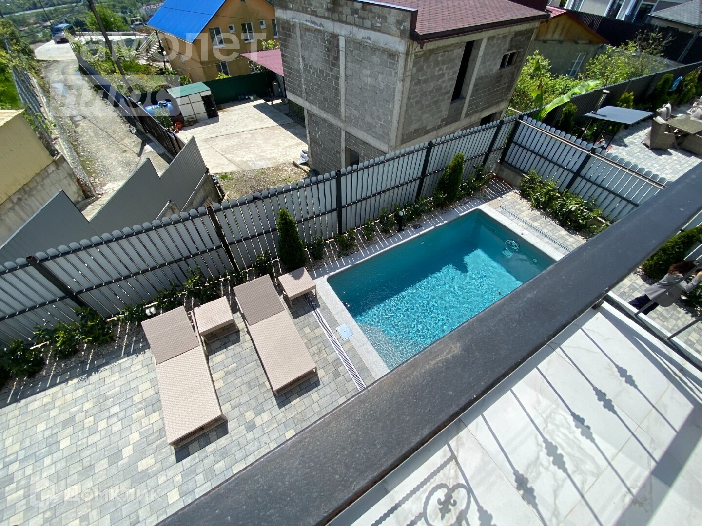 Во дворе дома есть тёплый бассейн, шезлонги, зона барбекю, батут, и зона отдыха.
