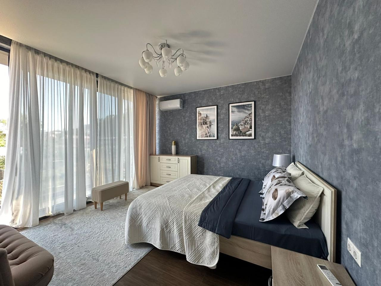 На втором этаже находятся комфортабельные спальни, каждая из которых оформлена в уникальном дизайне с акцентом на комфорт и стиль и из каждой выход на балкон.  В каждой спальне предусмотрены встроенные шкафы и большие окна с видом на окрестности. Главная спальня имеет отдельную гардеробную.