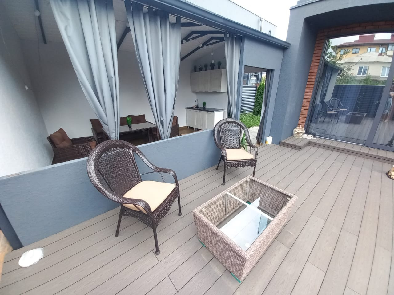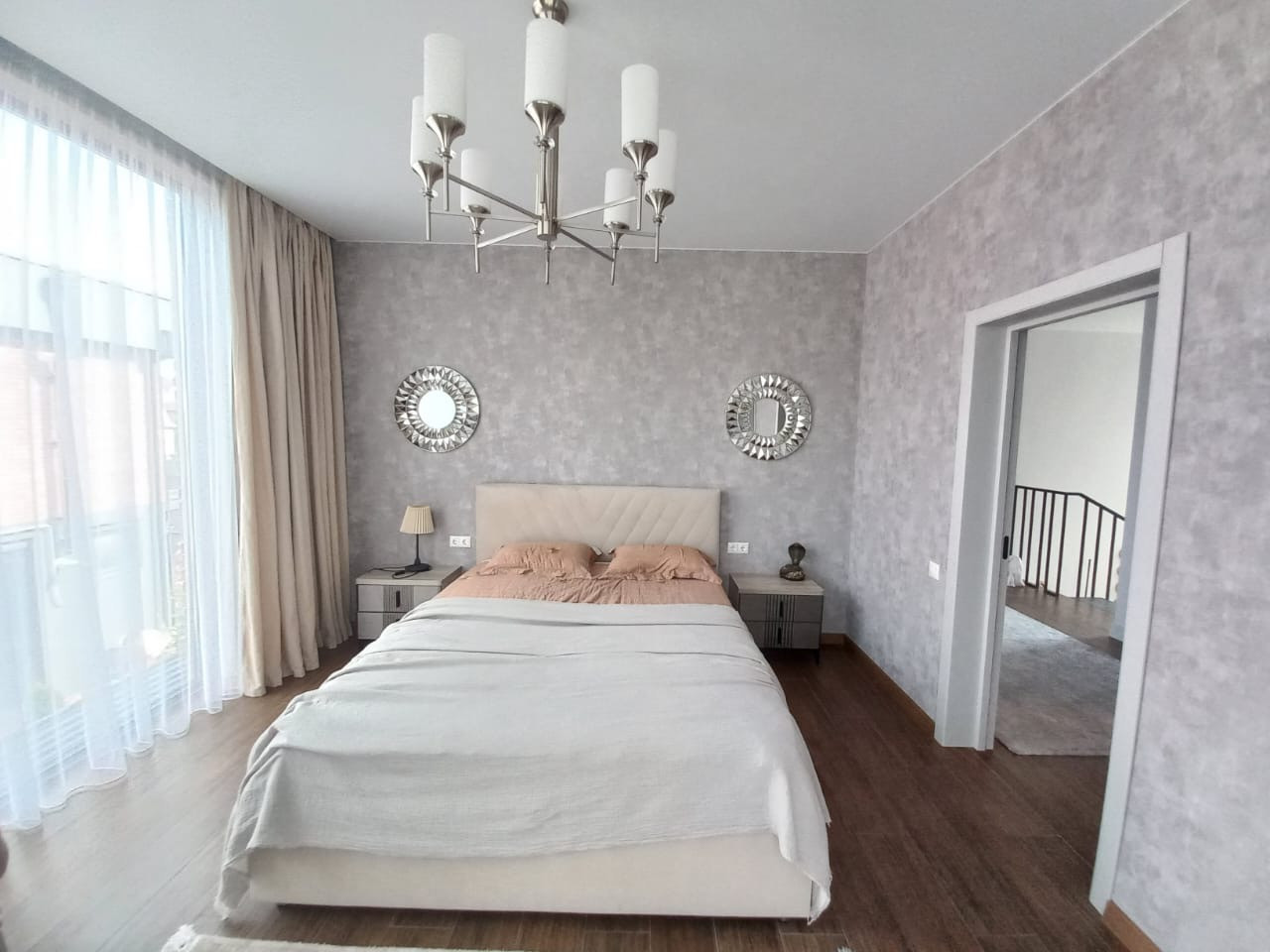 В доме 4 спальных комнаты, кухня-гостиная.