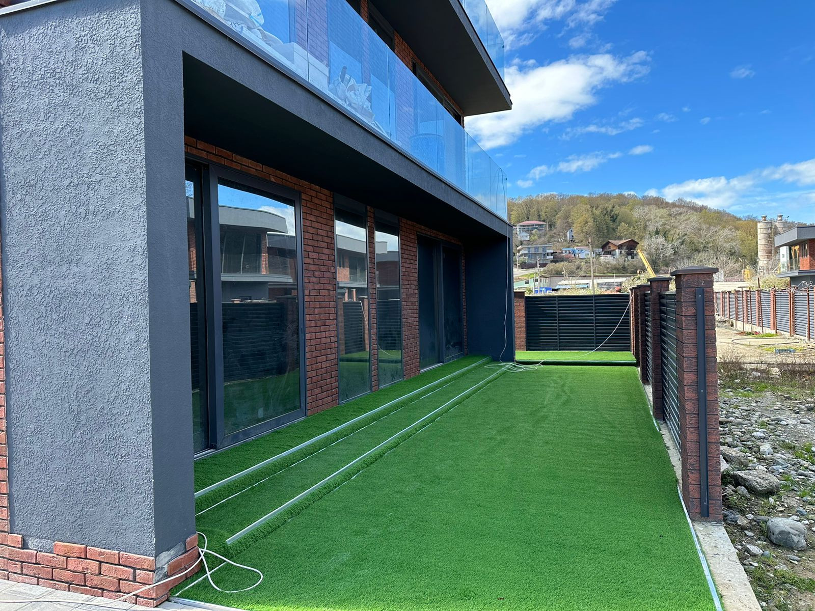 В продаже квартира по улице Мира, в новом комплексе. Закрытый коттеджный поселок, на котором расположены 4 частных дома с бассейном и Один Трех этажный Квартирный дом на Три Квартиры. Красивая отделка дома, облагороженная территория.  Хорошее расположение, ровная местность. Вокруг много зелени, хороший вид на горы.  пгт Ситриус в 15 минутах езды, вся инфраструктура Олимпийского Парка всего в 15 минутах.