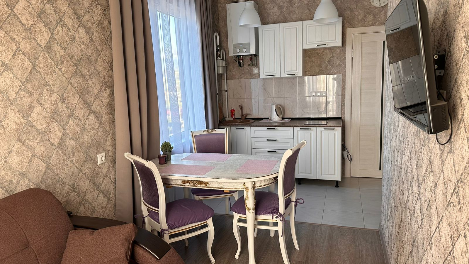 S=33 м2 с балконом, евродвушка. Коммуникации центральные, теплые полы, индивидуальный газовый котел. Низкие коммунальные платежи.