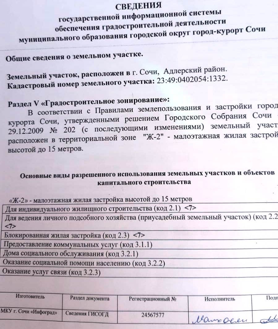 Виды разрешенного использования  ИЖС, предпринимательство -видны в справке ИСОГД