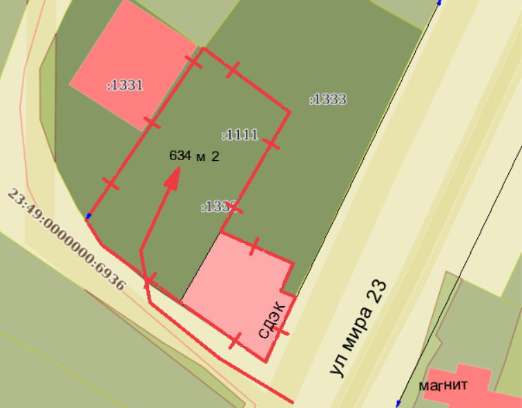 земельный участок 23:49:0402054:1332 636 м 2 в центре торгового района , ПЕРВАЯ ЛИНИЯ!!