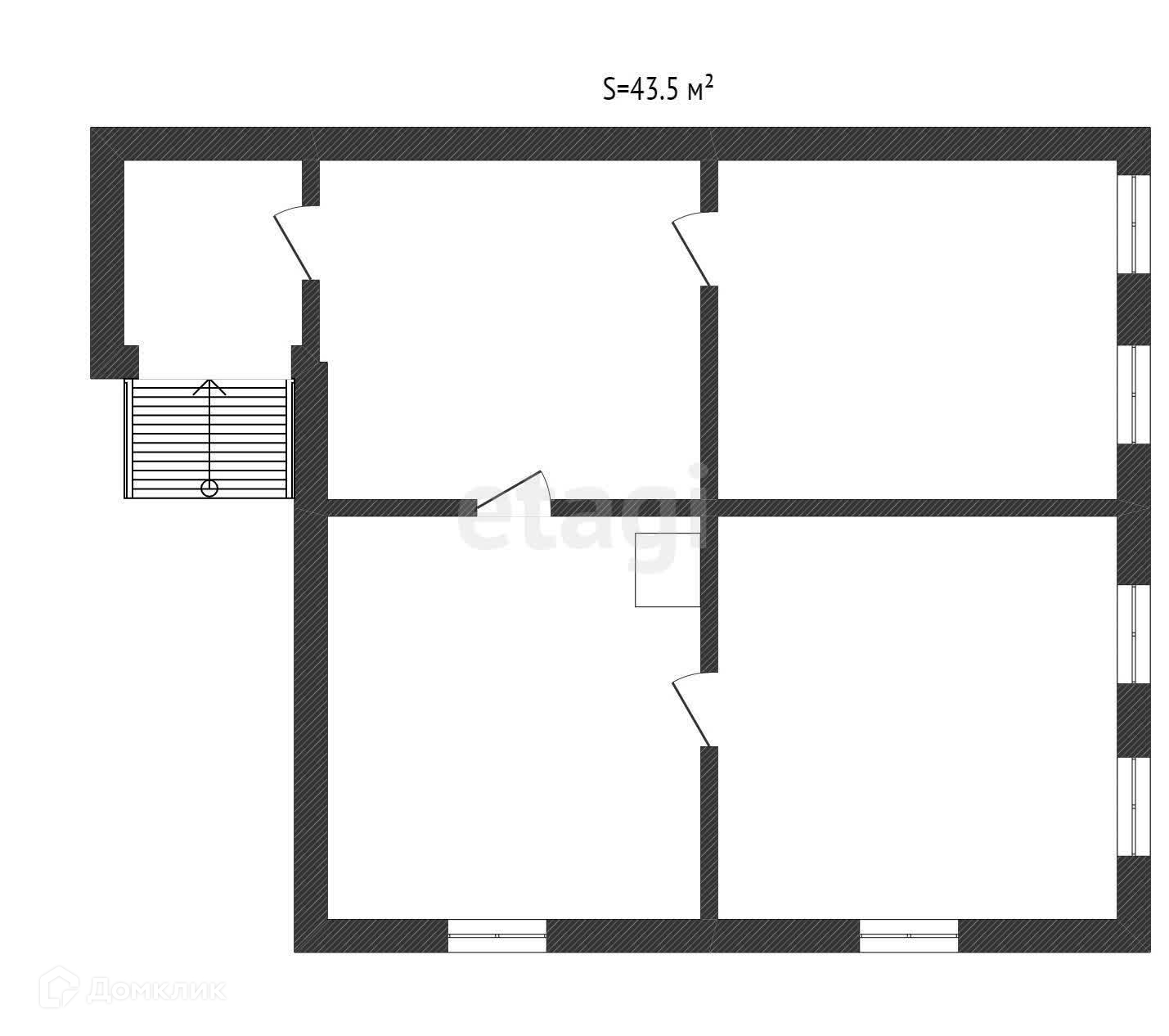 Общая площадь 43.5 м2