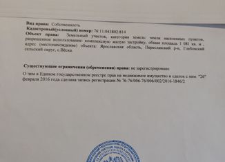 Продам земельный участок или в приоритете обменяю на любое жилье: квартиру, дом, комнату в общежитии, рассмотрю любые варианты жилья в городе Переславль-Залесский, либо рядом в находящихся ПГТ и сельских поселениях недалеко от города Переславль-Залесский. Земельный участок: адрес: Ярославская область, Переславский р-н, сельхоз земля с. Веска тер; площадь... |