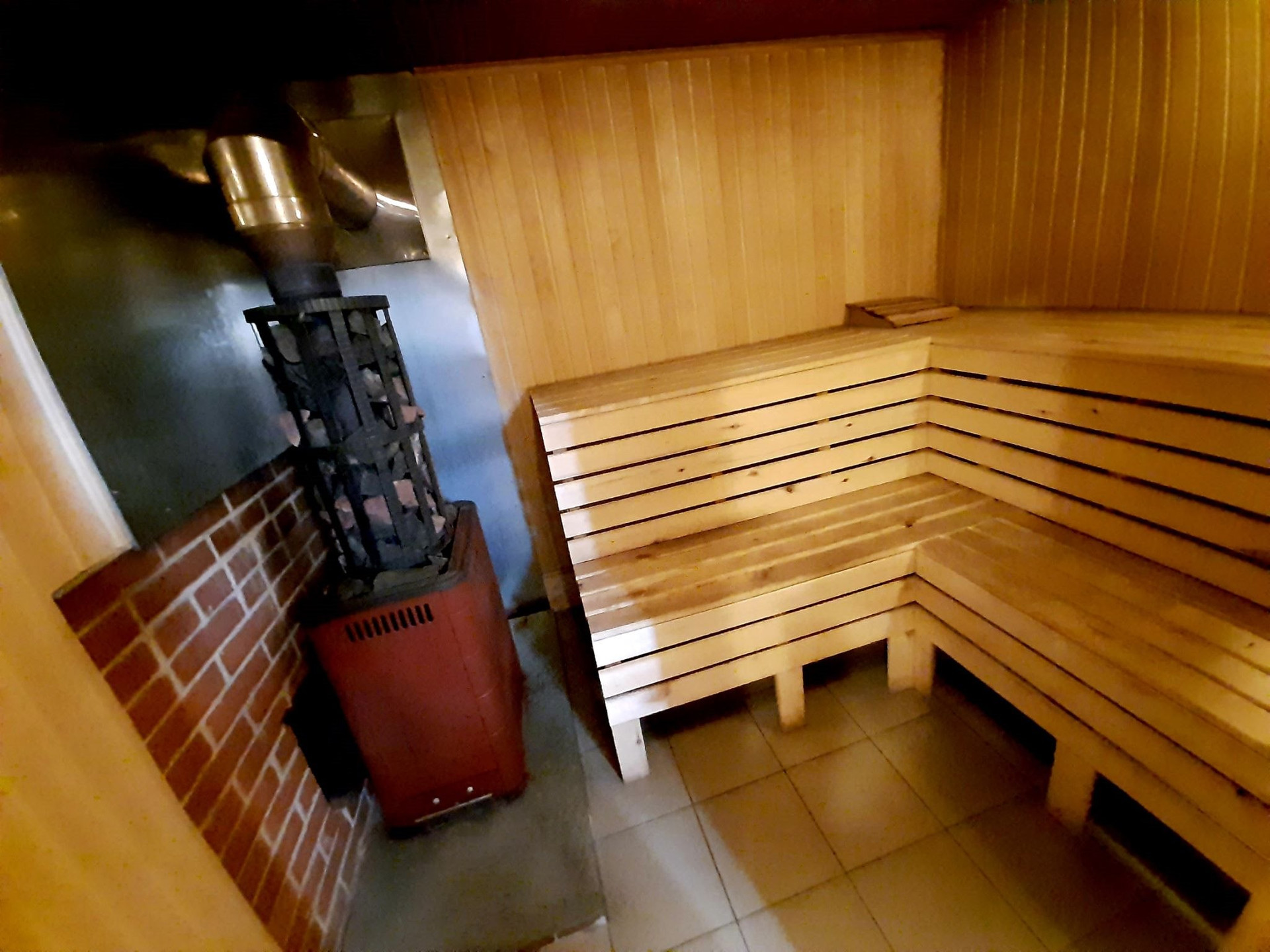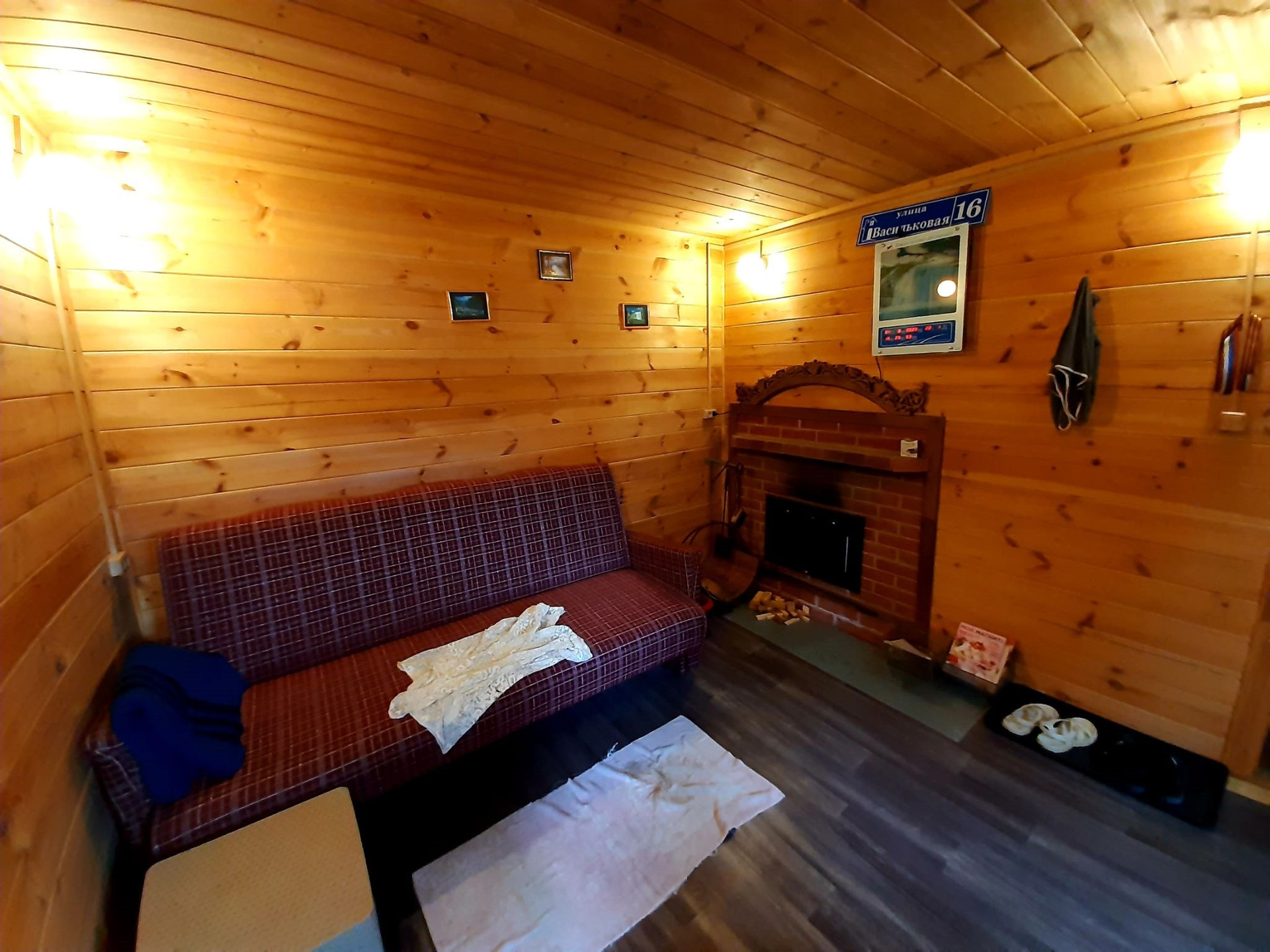 В бане комната для отдыха, помывочная, установлена стиральная машина.