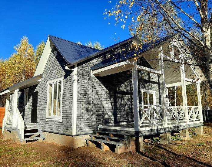 В стоимость входит дом со всеми коммуникациями (септик, скважина, отопление от эл. котла, эл-во, сантехника), участок 7.5 соток.