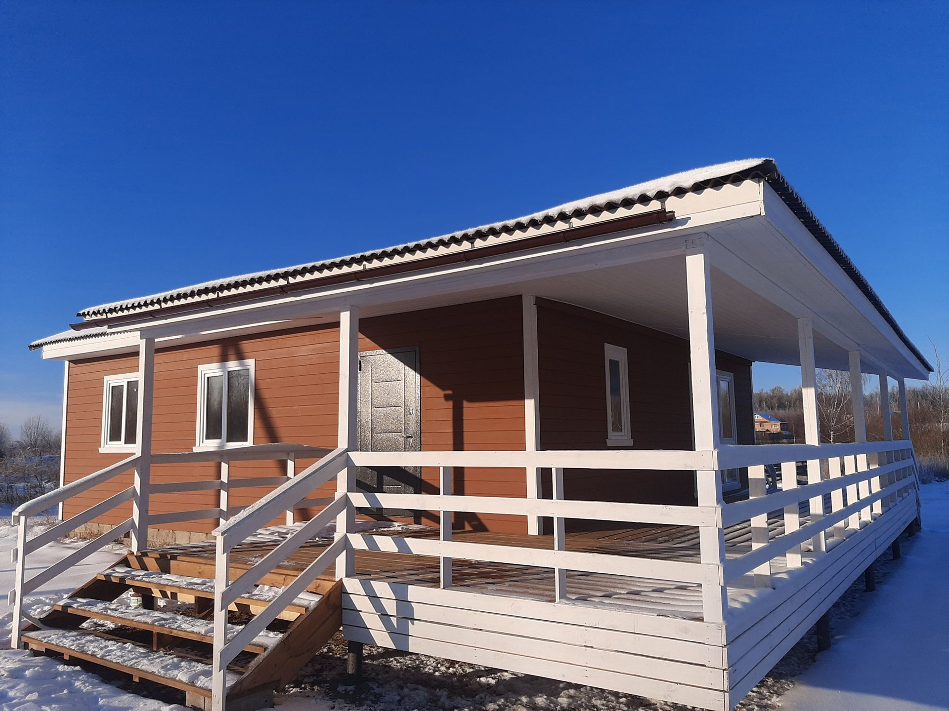 Дом построен по каркасно-брусовой технологии, подходит для круглогодичного проживания.Стены дома внутри обшиты имитацией бруса, пол-ламинат, установлены двери, настил пола веранды - строганная обработанная доска. Год постройки 2022 год.