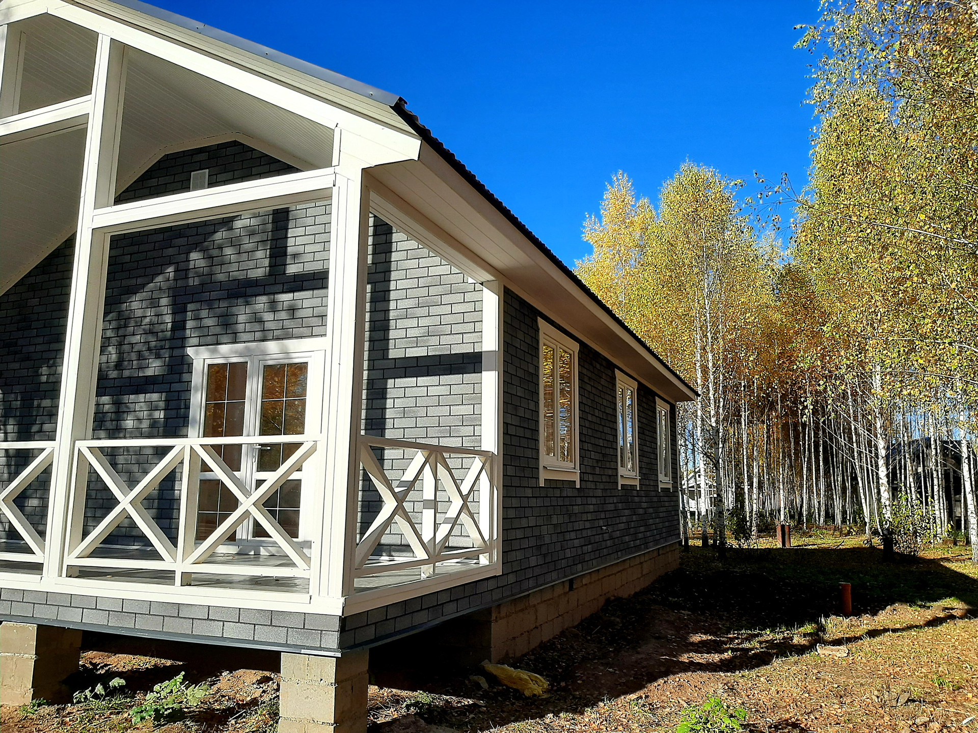 В доме функциональная планировка: крыльцо, тамбур, кухня-гостиная с выходом на просторную веранду, санузел, холл, три полноценные комнаты.