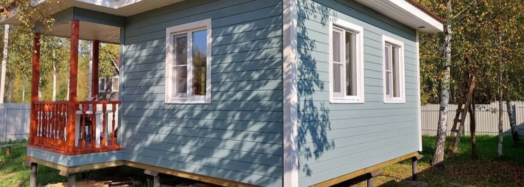 Дом построен по каркасно-брусовой технологии в 2023 году, можно использовать круглогодично и как гостевой дом. Есть место для постройки основного дома.