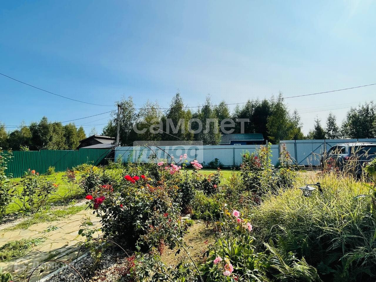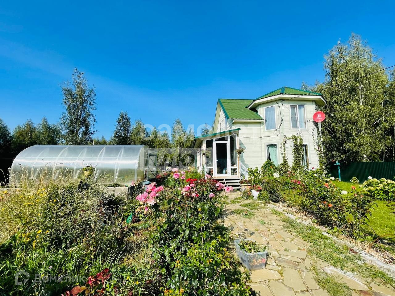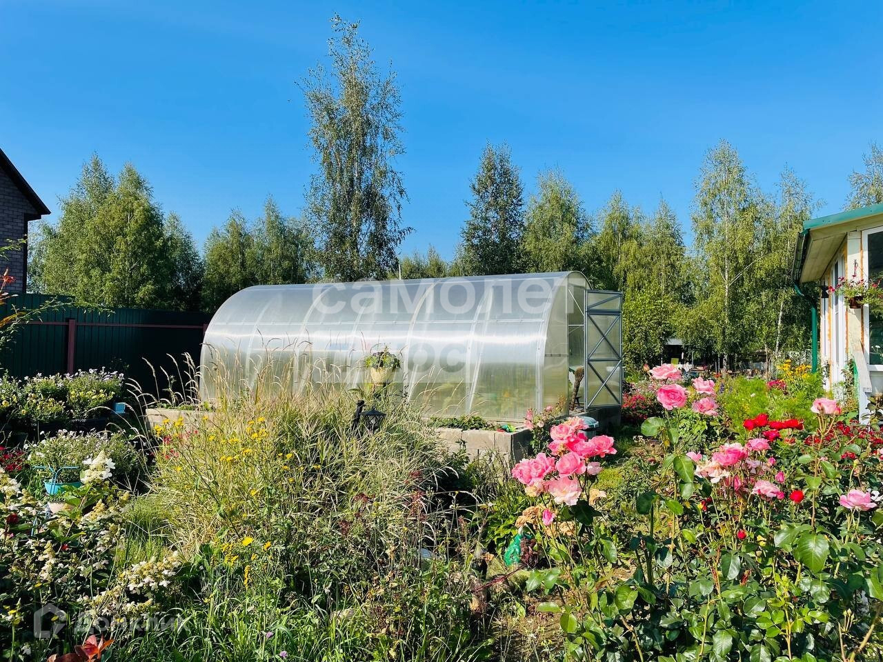 Участок 18 соток , правильной формы , сухой , полностью огорожена забором , так же на участке отсыпана парковка на 4 машины , выложена широкая дорожка из плитняка ,ухоженный газон , отсыпана зона прудика и отдыха (под песком плотный вагонный материал ) . На участке теплица с кубовиком и автополивом жук , на фундаменте 60см, дорожка в плитке . Виноградник на шпалере ,грядки с клубникой ( все сортовое , выращено из семян ) . цветники и огромный розарий ( на подложке , замульчирован камнем ) . Везде покупной грунт , его очень много . Так же к дому построен хозблок 5/2м , полностью оборудован , с верстаком и стеллажами . На втором участке газон , сад-большой , лодоносящий, кустарники, цветники, зона для бассейна (так же отсыпана песком на подложке), качели, батут, баня, уличный туалет. Частично сохранили берёзы. Баня: 7/2м, 3 отделения,брус 150/100, печь-Ярмак, слив, пристроена терраса и навес под дрова.