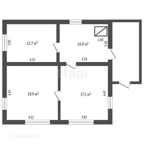 Общая площадь 59.6 м2