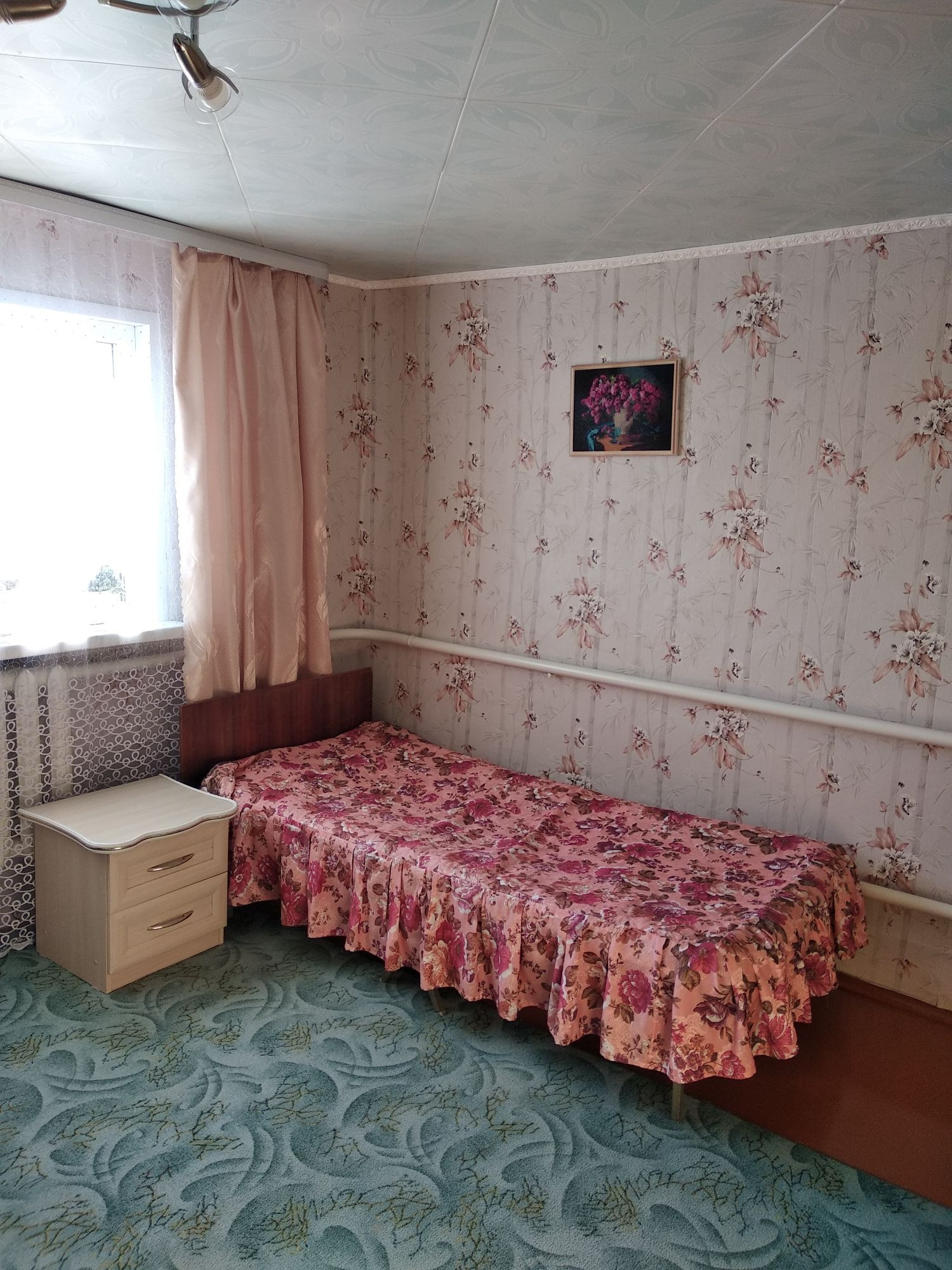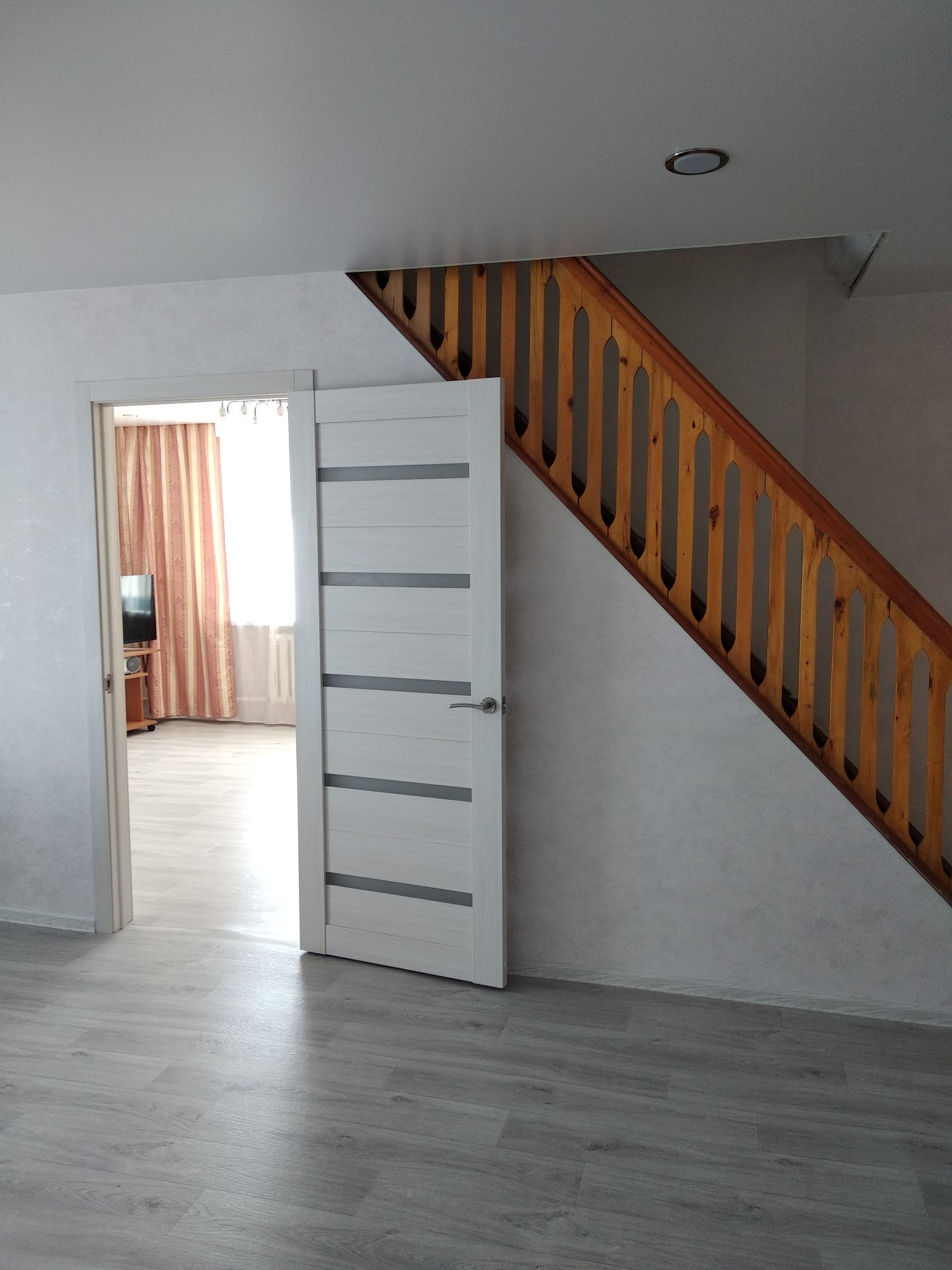 Дом двухэтажный, четыре комнаты: на 1 этаже просторная кухня- гостиная, спальня, гардеробная, совмещённый санузел; на 2 этаже- 2 спальни;