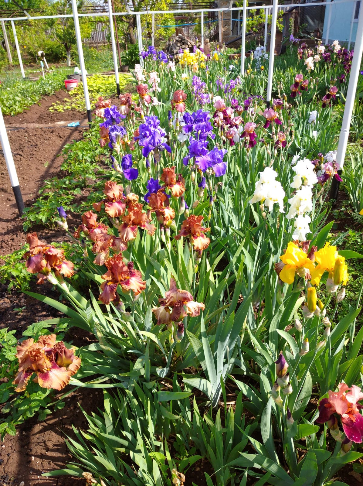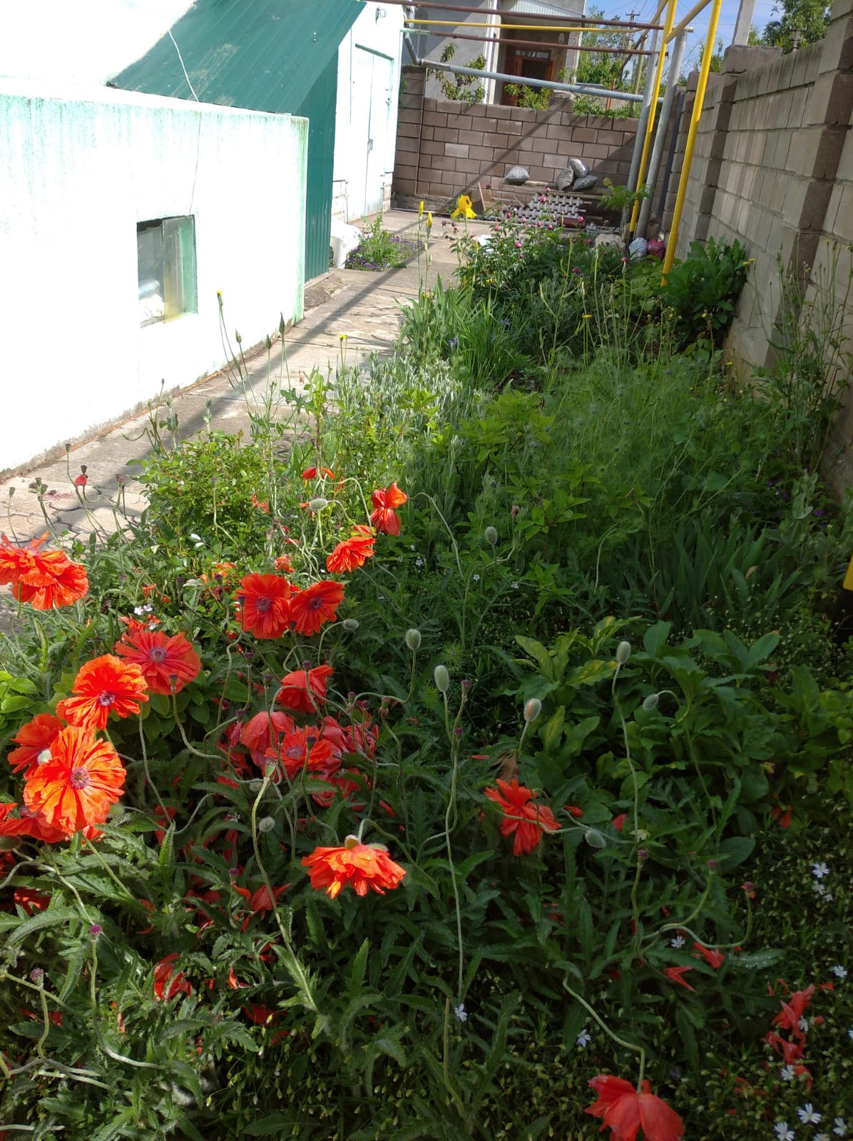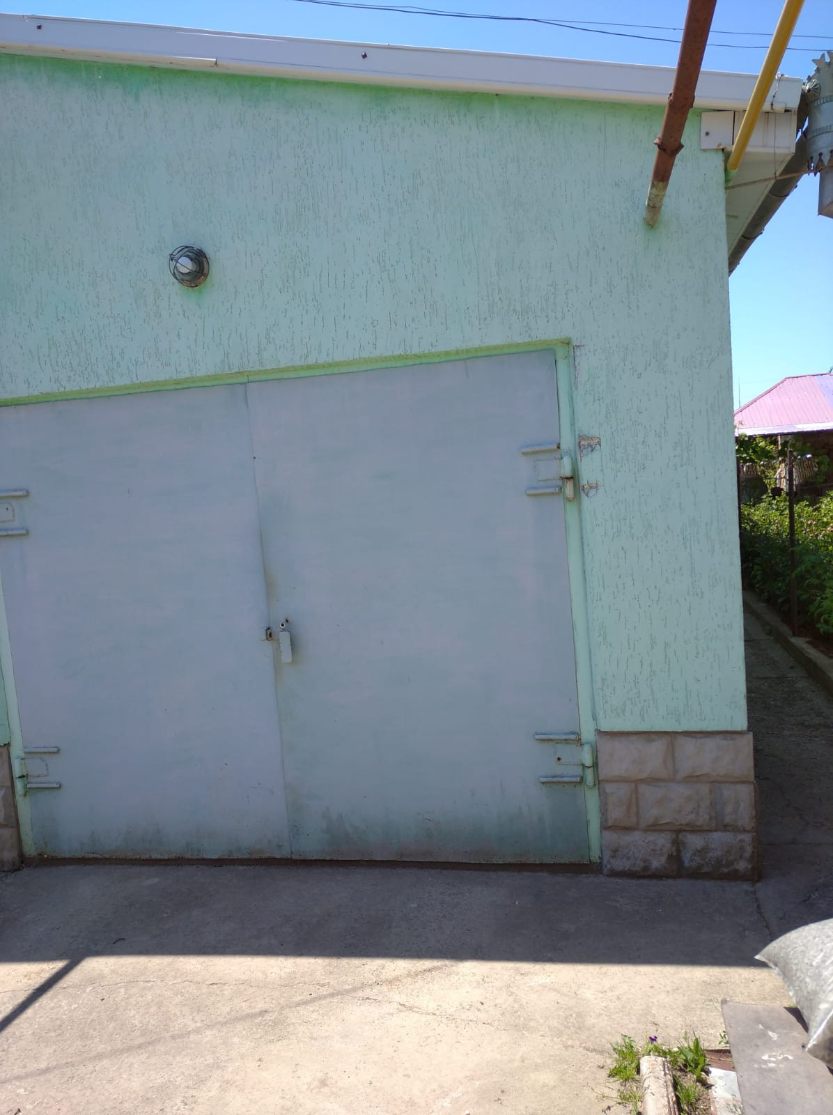 На половину огорода установлена на фундаменте огромная 190 м2 металлическая теплица под плёнку . По всему городу проведен летний водопровод (металлопластик)