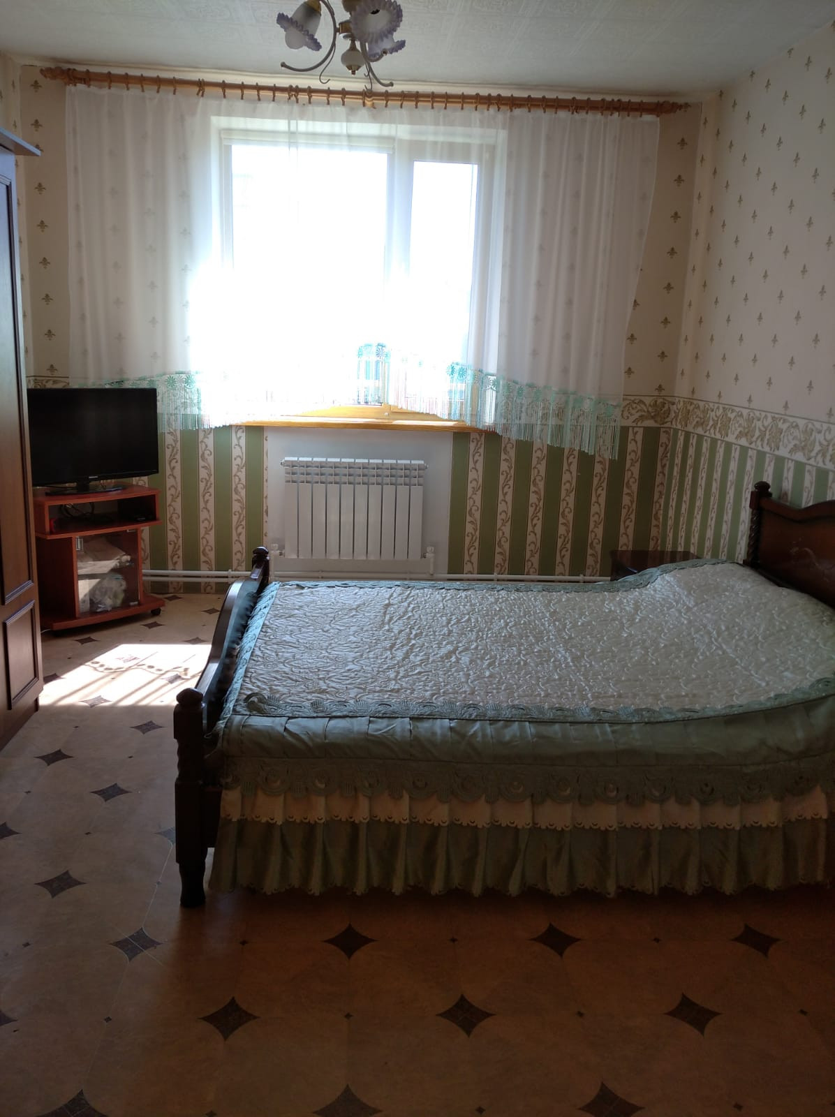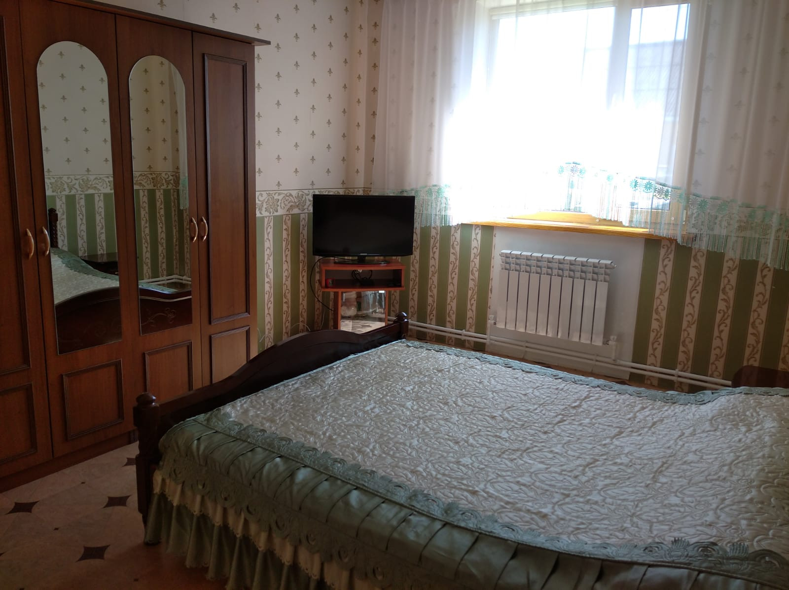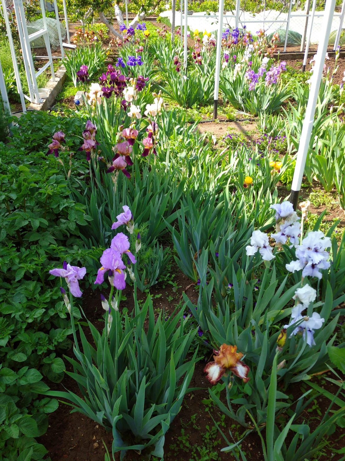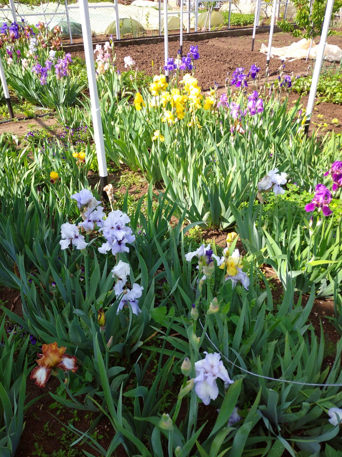 На половину огорода установлена на фундаменте огромная 190 м2 металлическая теплица под плёнку . По всему городу проведен летний водопровод (металлопластик)