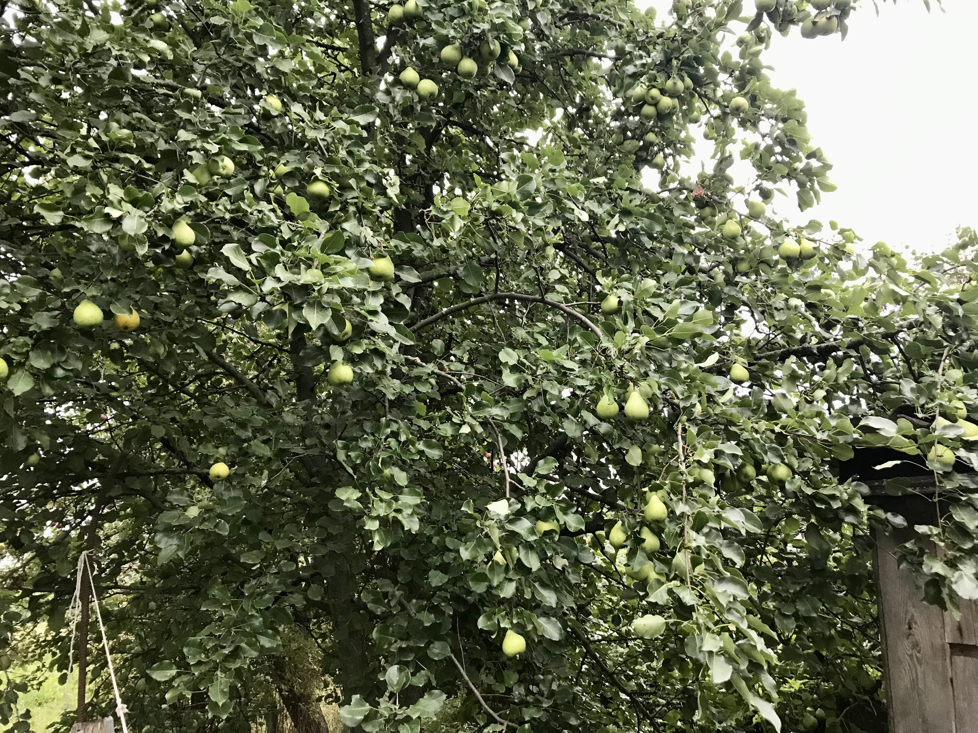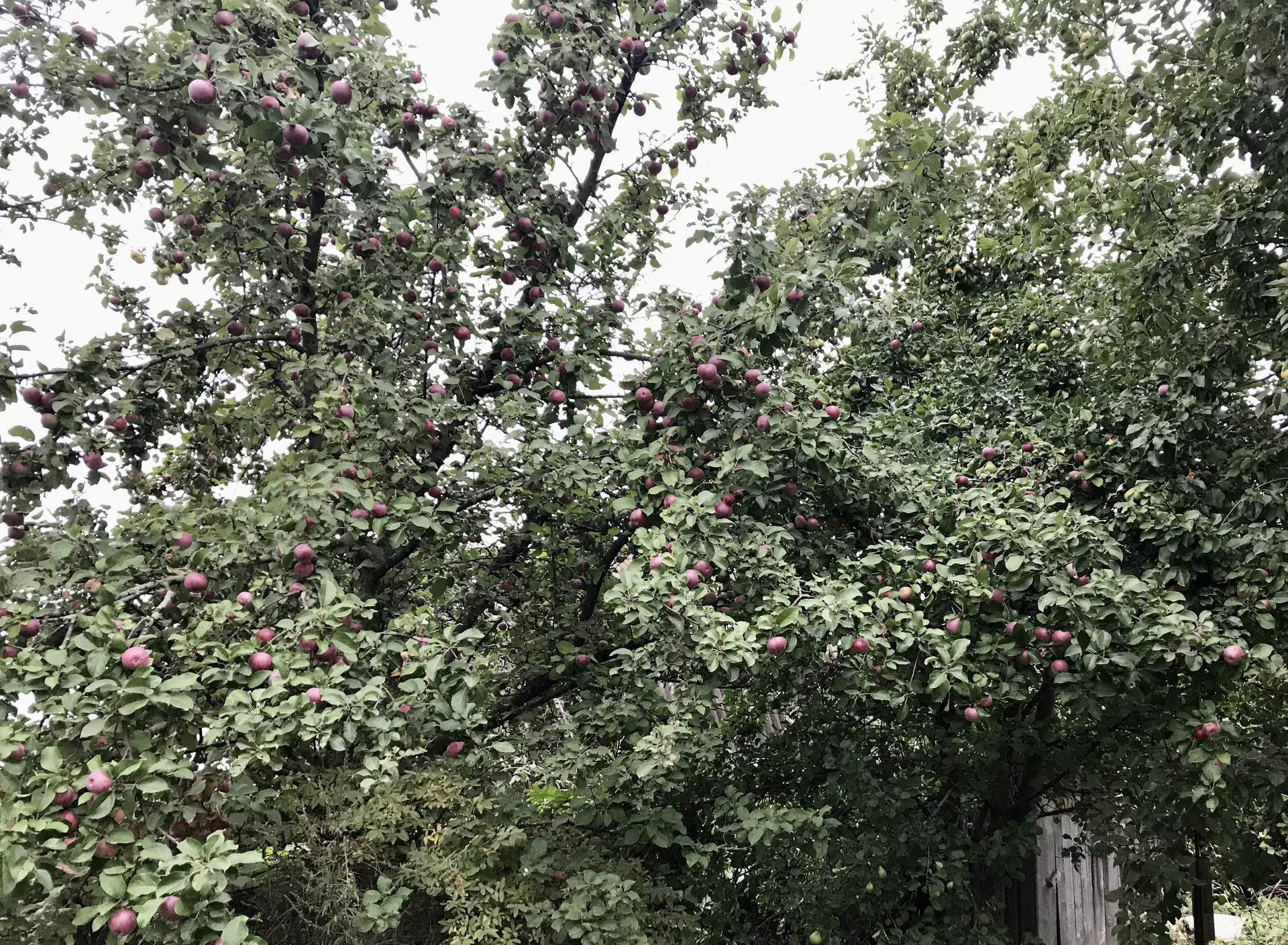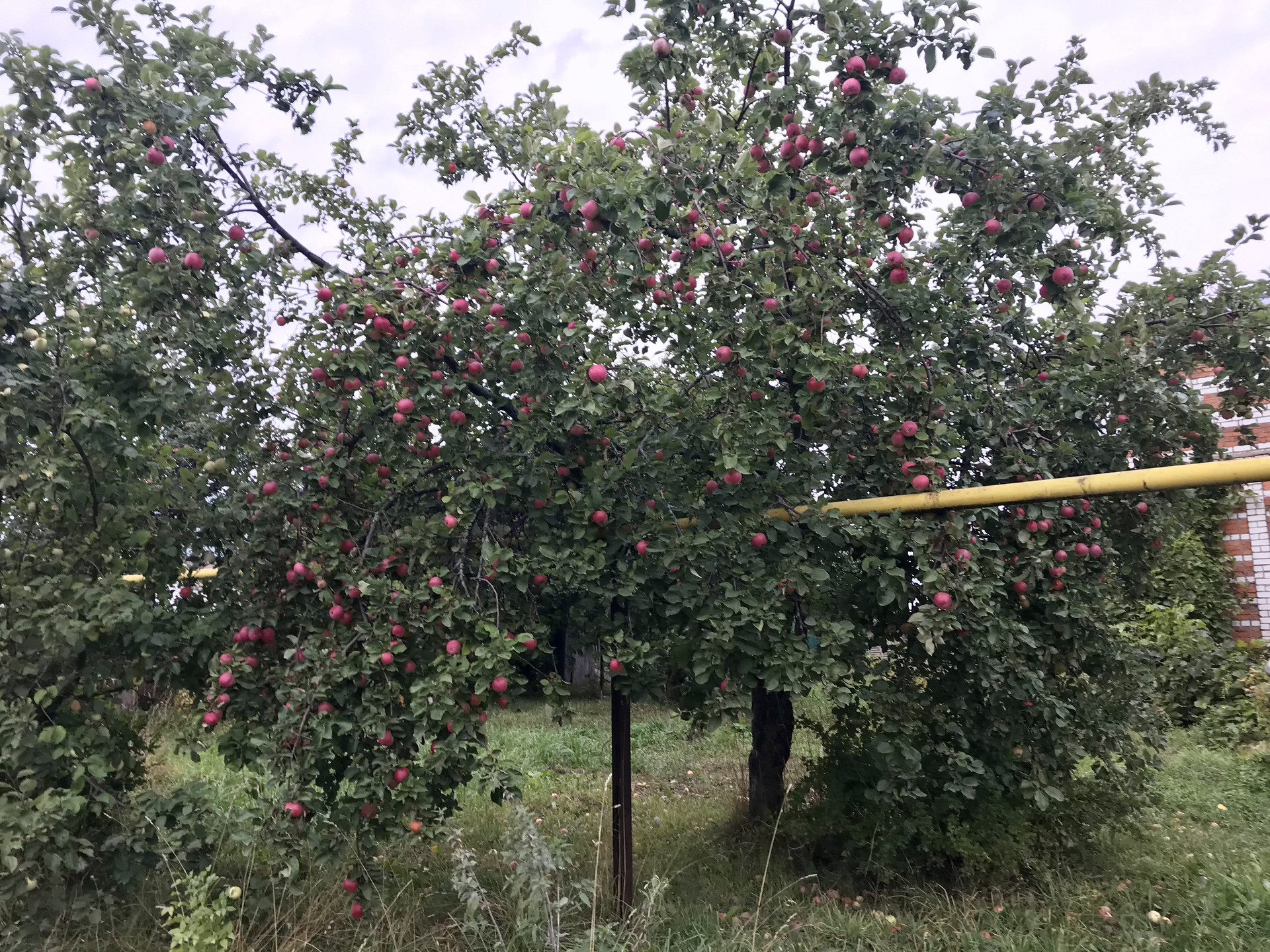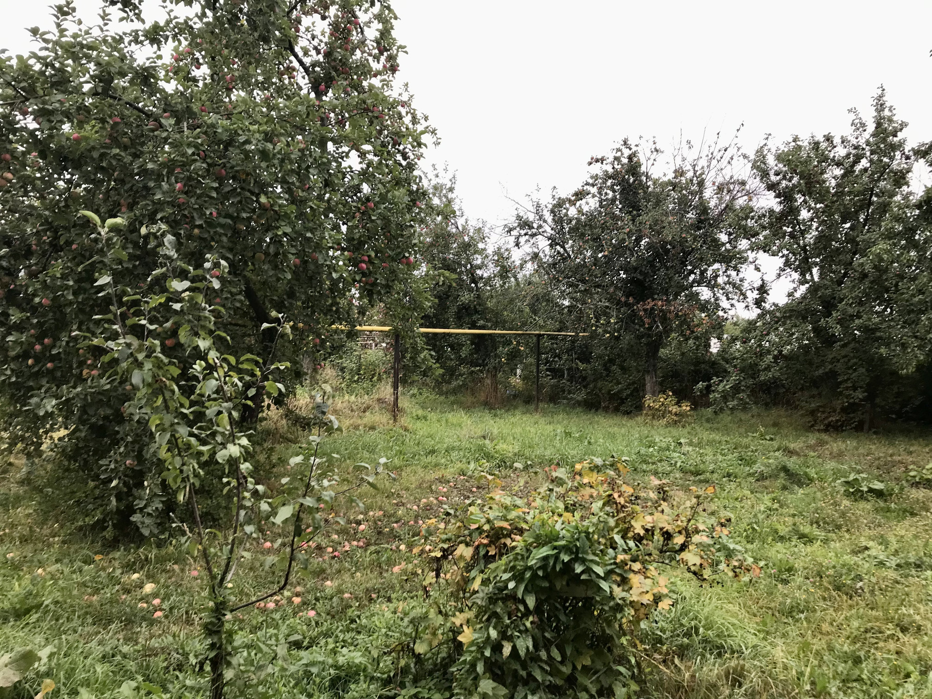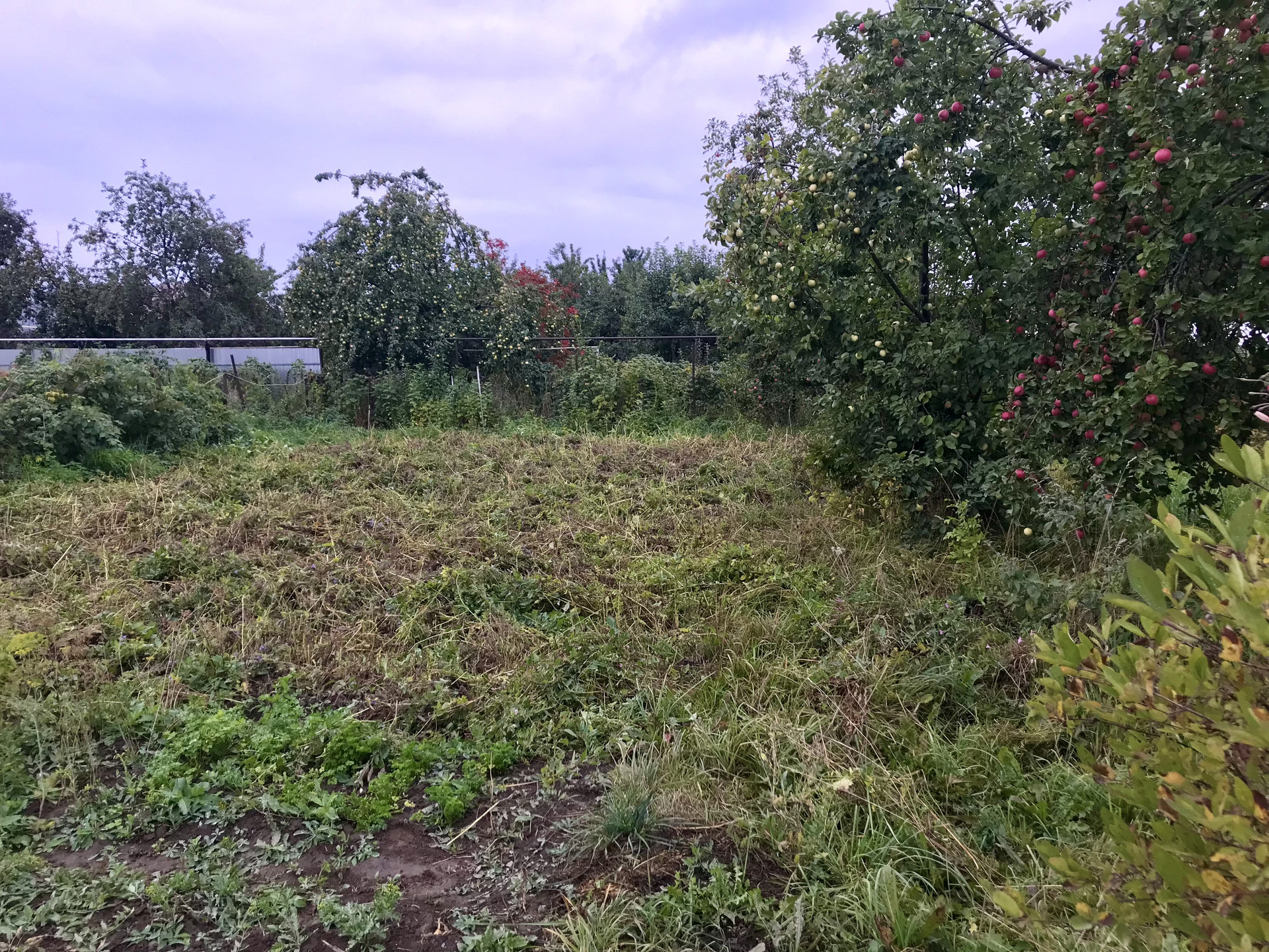 В саду растут яблони, груши, сливы , вишня, виноград и разные сорта ягод.