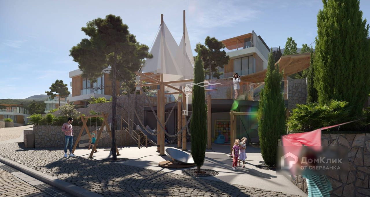 Потрясающие видовые характеристики – одно из главных преимуществ в поселке «Паруса мечты». Архитектура поселка продумана и встроена в местность так, что из панорамных окон абсолютно всех домов открывается захватывающий дух вид на искрящееся море, густой лес и величественную гору Кастель. Эти пейзажи по-разному прекрасны в каждое время года: весной и летом это буйство всех оттенков зеленого, а осенью – целая палитра цветов от янтарного до насыщенного красного.