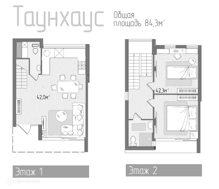 Площадь 2 этажа - 42,3 кв.м