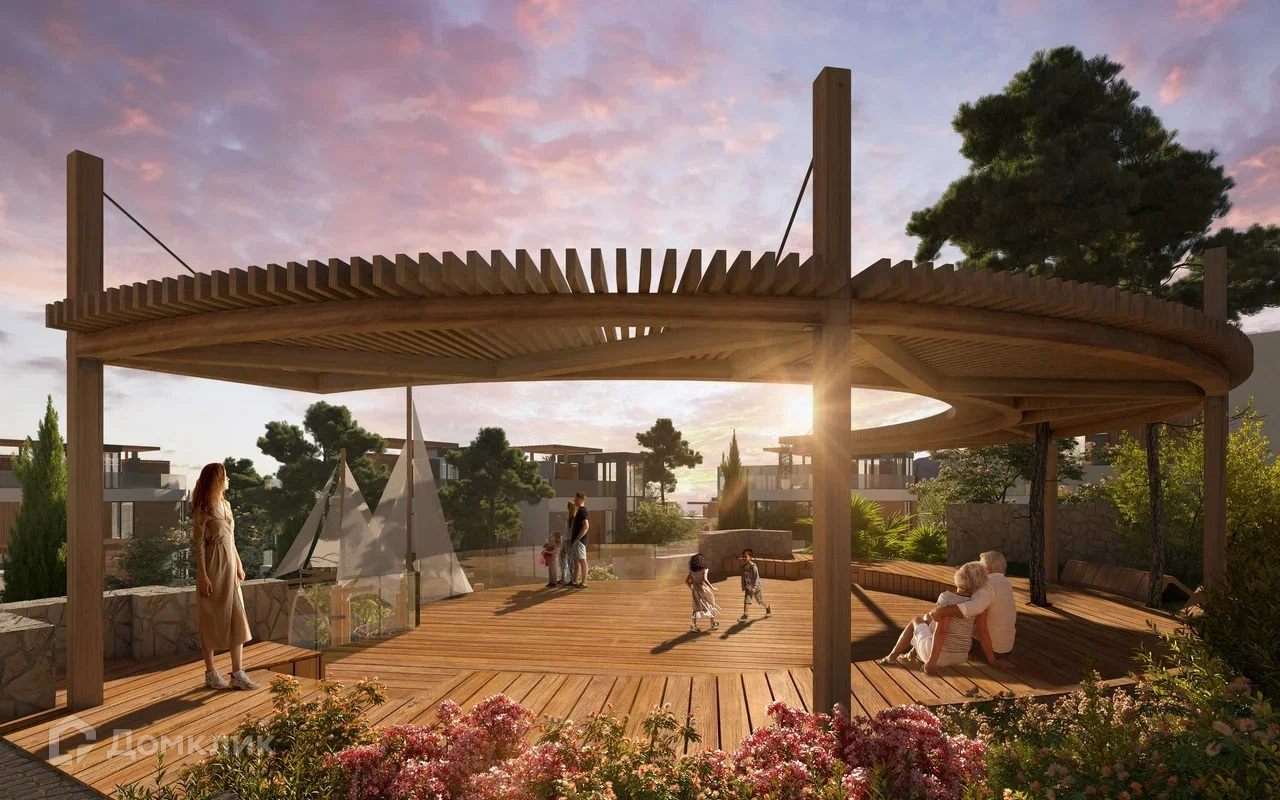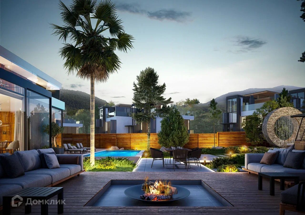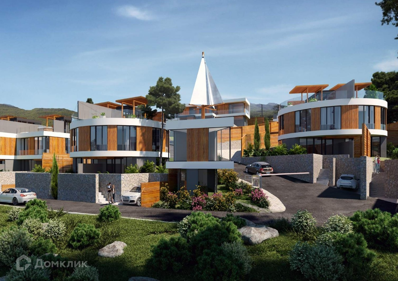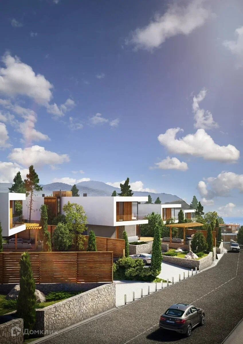 Архитектура таунхаусов выполнена в авторском футуристическом стиле, с панорамными окнами, откуда открывается вид на море и гору "Кастель".