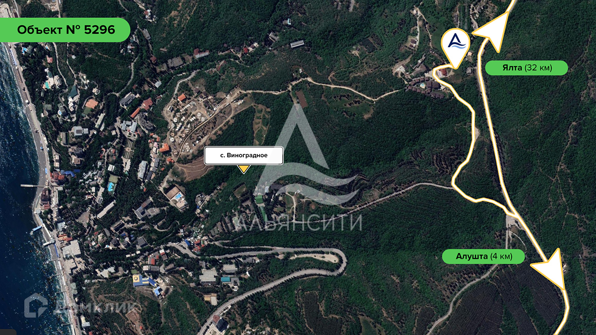 Продается земельный участок в городе Алушта, село Виноградное, возле курортного клуба Дачи. Общая площадь участка: 4.3 соток. Назначение: индивидуальное жилищное строительство.